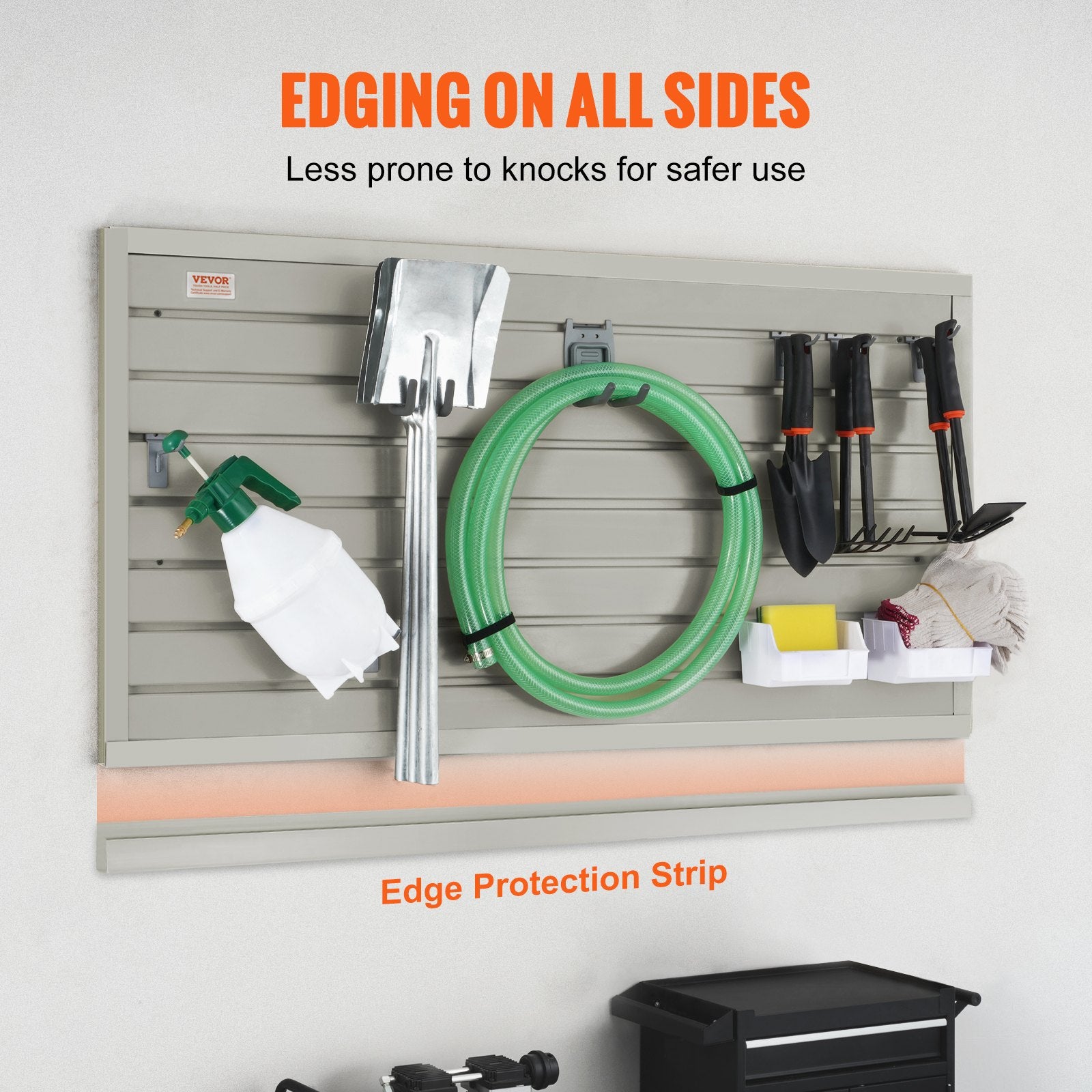 We've thought of everything. Security-first edge bands _ check. A look that turns heads _ check. Solo setup _ easy-peasy. These slat wall panels are a dream to clean and a cinch to switch up with different hooks for all your stuff. It's the little things that make a big difference.