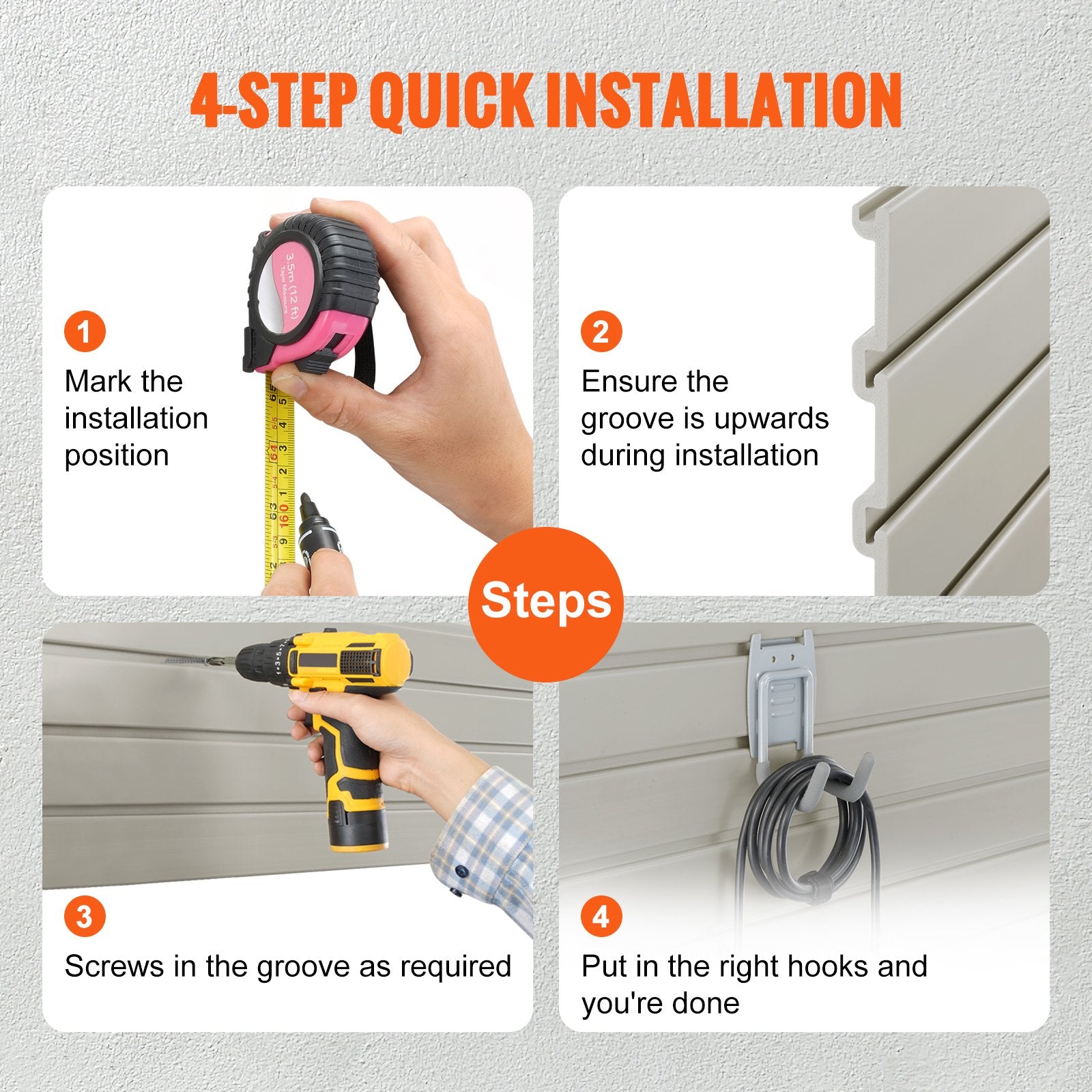 No pros are needed here! Slatwall installation is a breeze with just 4 simple steps. Mark it, mount it with the groove up, drill it, and screw it. You'll be up and running in minutes, not hours. Get ready to transform your space without breaking a sweat.