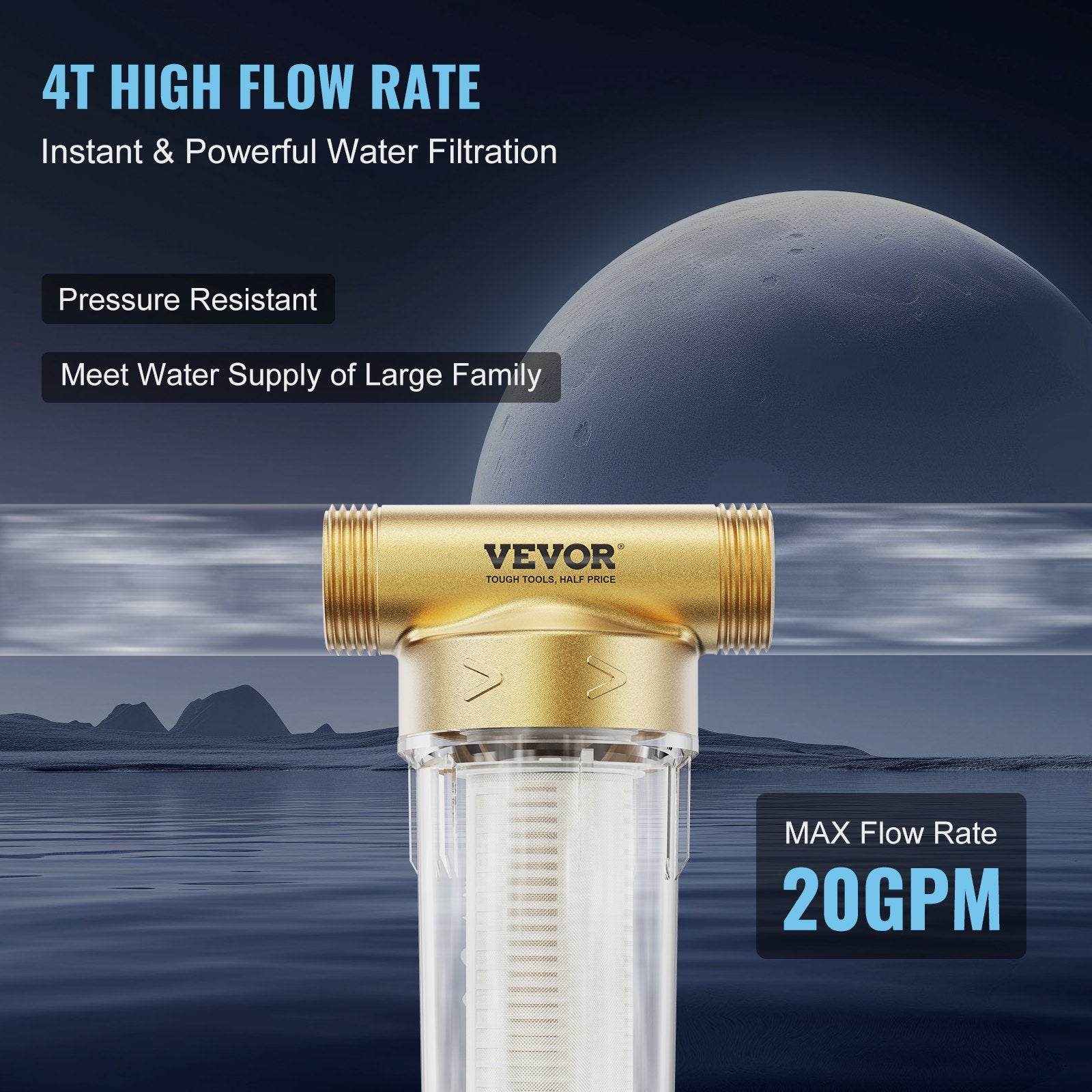 The filter is very easy to install, requiring no welding or glue. It can be used with copper pipes, PEX pipes, and CPVC pipes. There are two types of threads at both ends of the joint: 3/4" G-F + 1" G-M. It can be installed outdoors without direct sunlight, preventing algae growth.