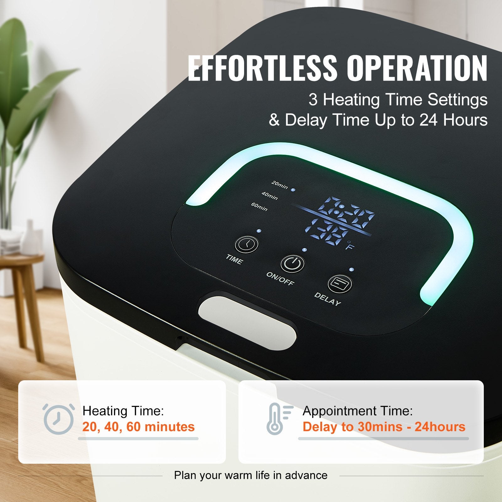 The towel warmer features a user-friendly design, allowing you to choose between 20, 40, and 60 min timers and a 24-hour delay function, so warmth is always available when you need it. For example, you can put on warm clothes when you get up in the morning, wrap yourself in a warm bath towel after the SPA.