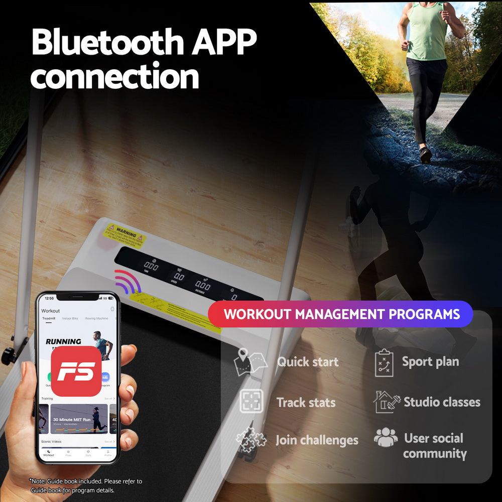 Treadmill Walking Pad 380mm | Electric Incline Under Desk | Fitness Equipment | White