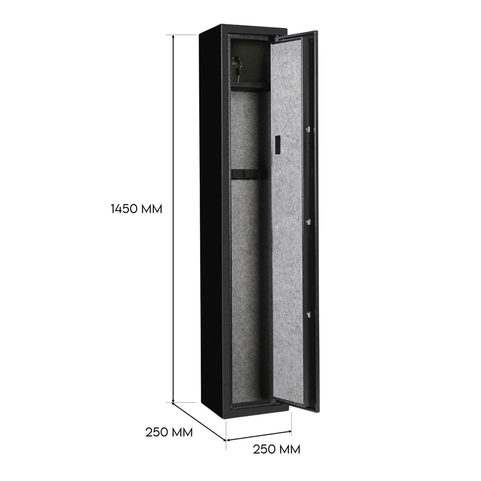 It is made out of steel and powder coated for durability and robustness. Blackbox Gun Safe allows you to stack long guns in rows and can fit up to 123cm in length.