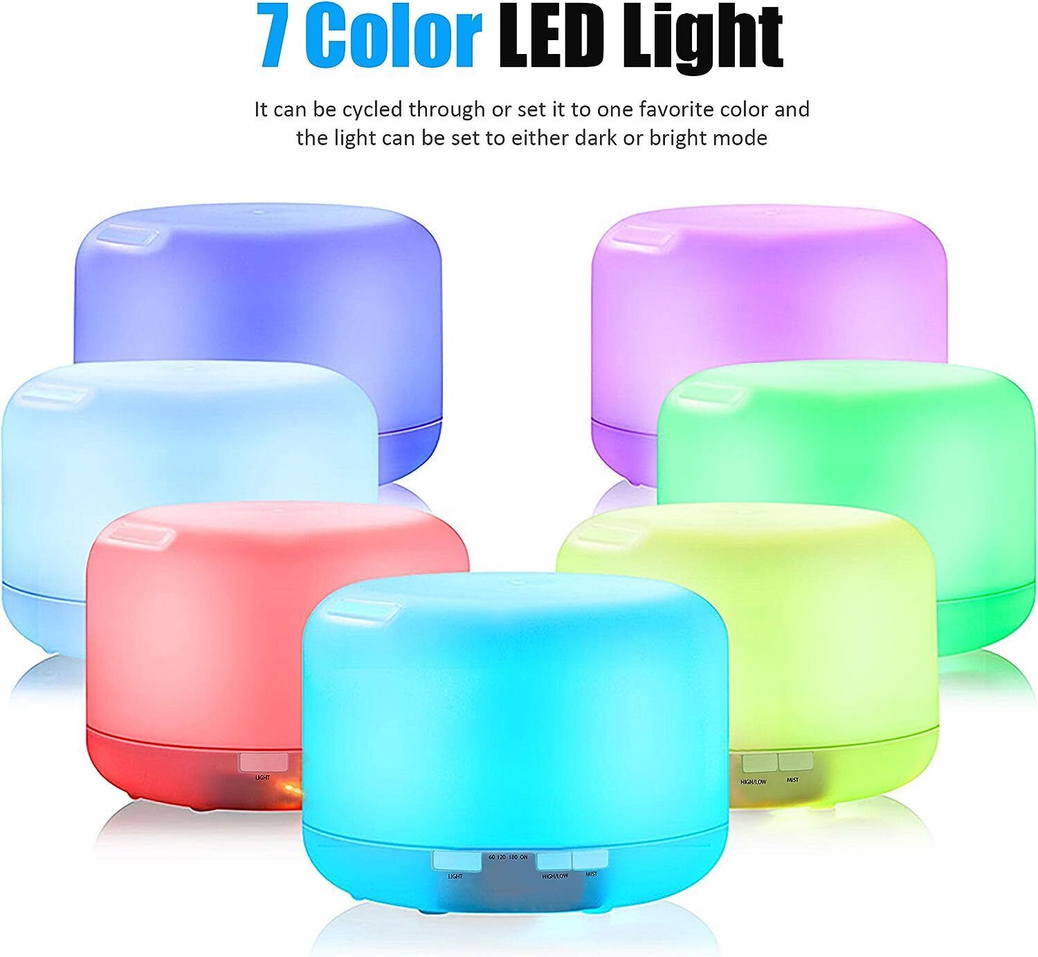 5 in 1 FUNCTIONS:Aromatherapy Diffuser, Humidifier,Purifier, Vaporizer,7 Colour Night Light.