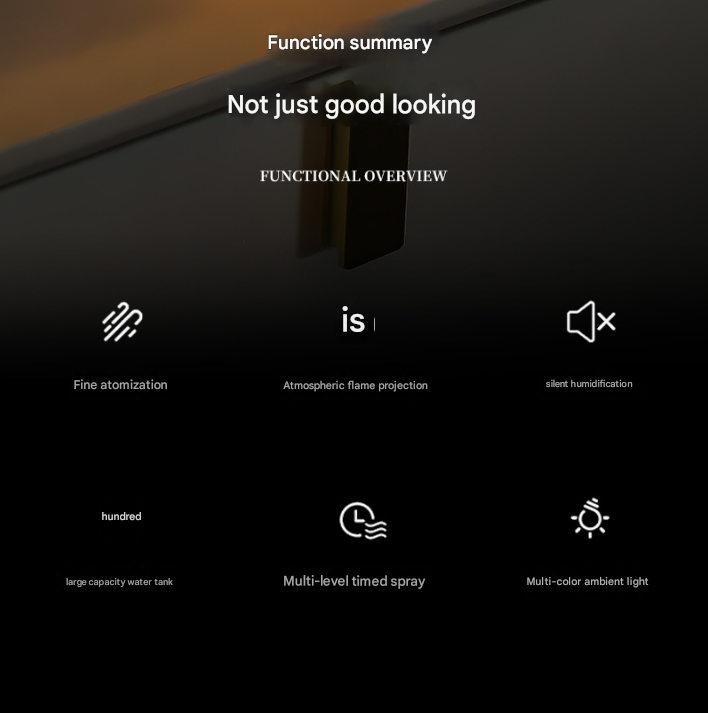 • Ambient Flame Projection: Creates a warm and inviting ambiance with its realistic flame effect.