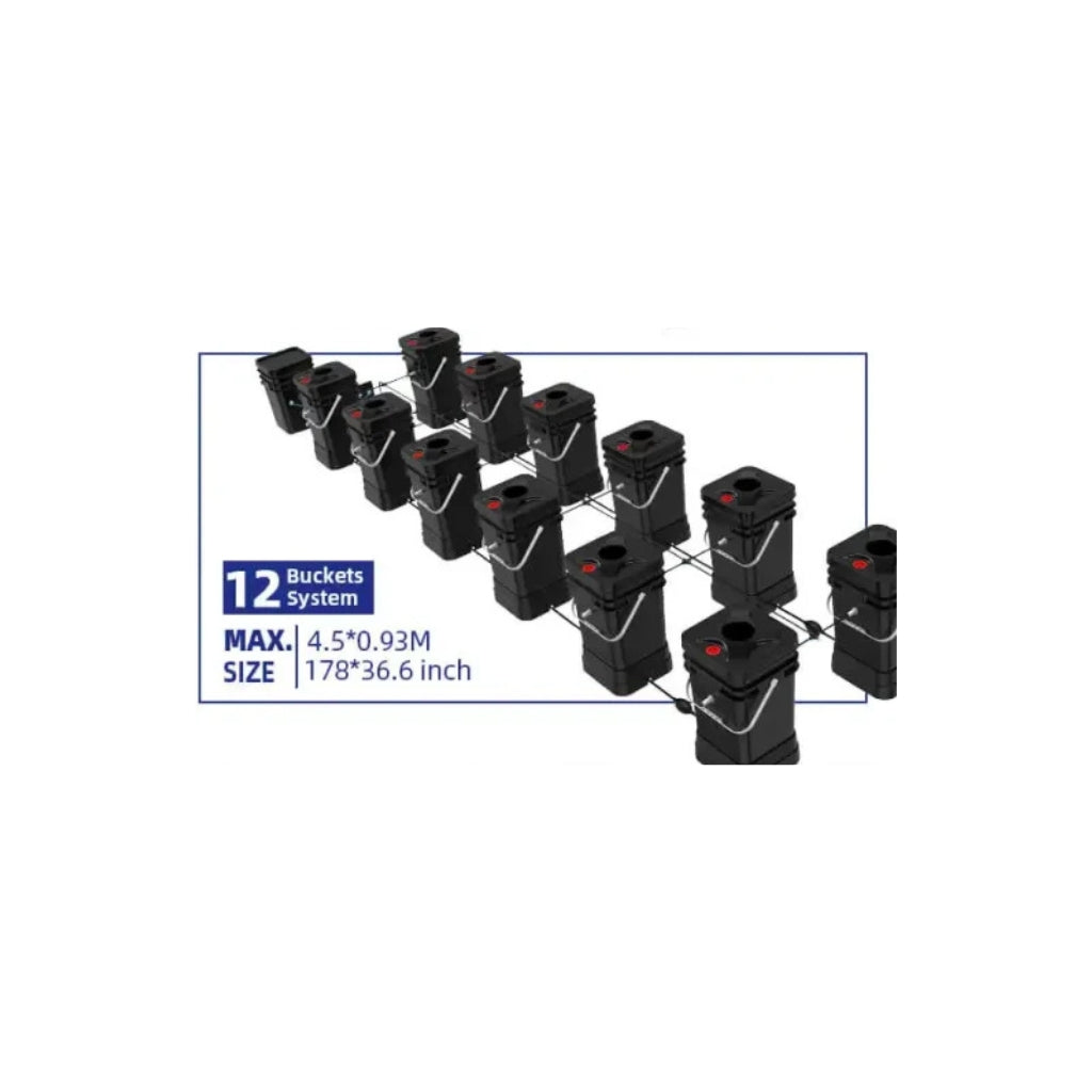 The Sunplus 12 Pot Aeroponic Bucket System is designed for growers who demand more β more yield, more control, and more efficiency. This high-capacity system includes 12 x 20L grow buckets, a central 20L reservoir, dual whisper-quiet pumps, and an intuitive digital timer that automates misting cycles for worry-free results.