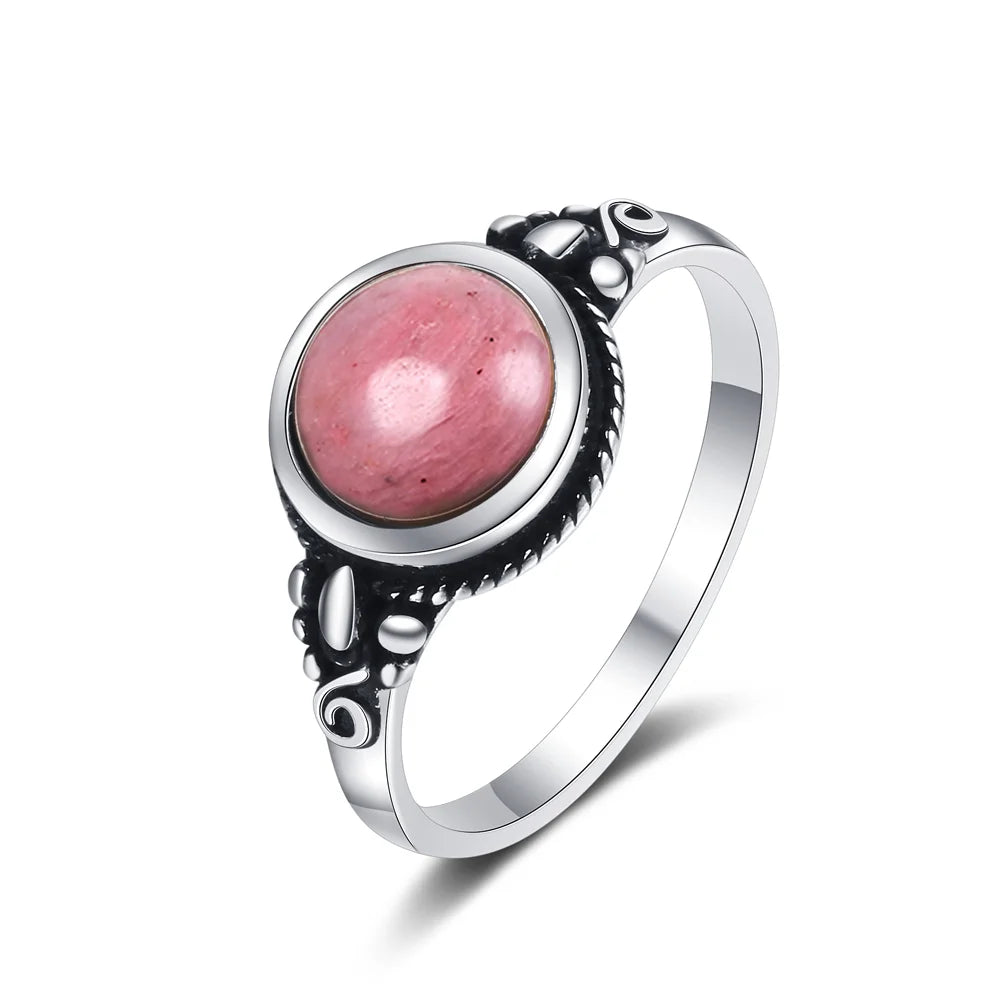 Rhodochrosite, renowned for its gentle pink hues and intricate banding, radiates a sense of love and compassion, making each ring a symbol of affection and connection. Whether you're adding a touch of sophistication to your everyday attire or accessorizing for a special occasion, this ring effortlessly enhances any look.