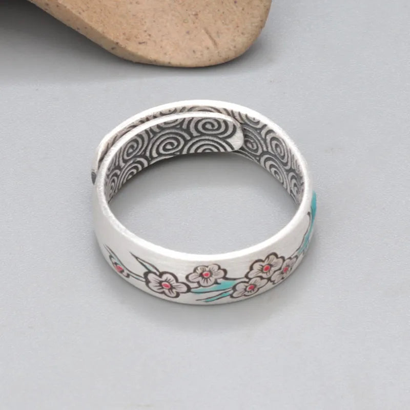 Step into the free-spirited world of the Hippie Styled Plum Flower Ring, a radiant embodiment of bohemian charm. Handcrafted with love from 999 Pure Silver, this ring celebrates the beauty of nature in its most whimsical form.