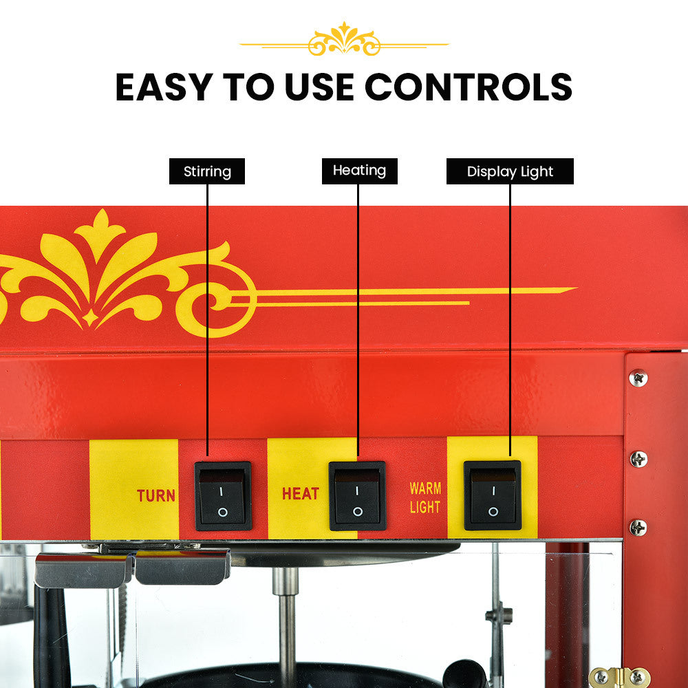 If you’re looking for a fun and lucrative way to increase your income, or perhaps the ultimate popcorn machine for a serious home cinema, then look no further! This large machine combines nostalgic vintage charm with a huge 1440W of heating power to produce a high volume of popcorn. This commercial-grade popcorn maker has a robust tempered glass food zone, and thanks to simple operation it’s also an option to hire it out for kids parties.