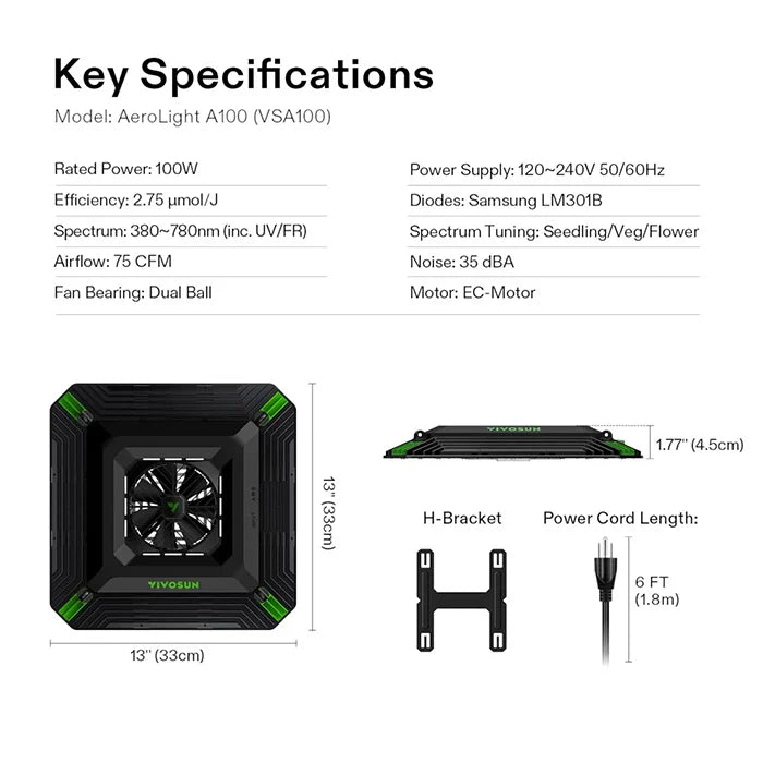 Featuring Samsung 301B diodes, the AeroLight covers the full PAR range (390nm–730nm, 3000K, 5000K), mimicking natural sunlight to support all growth stages.