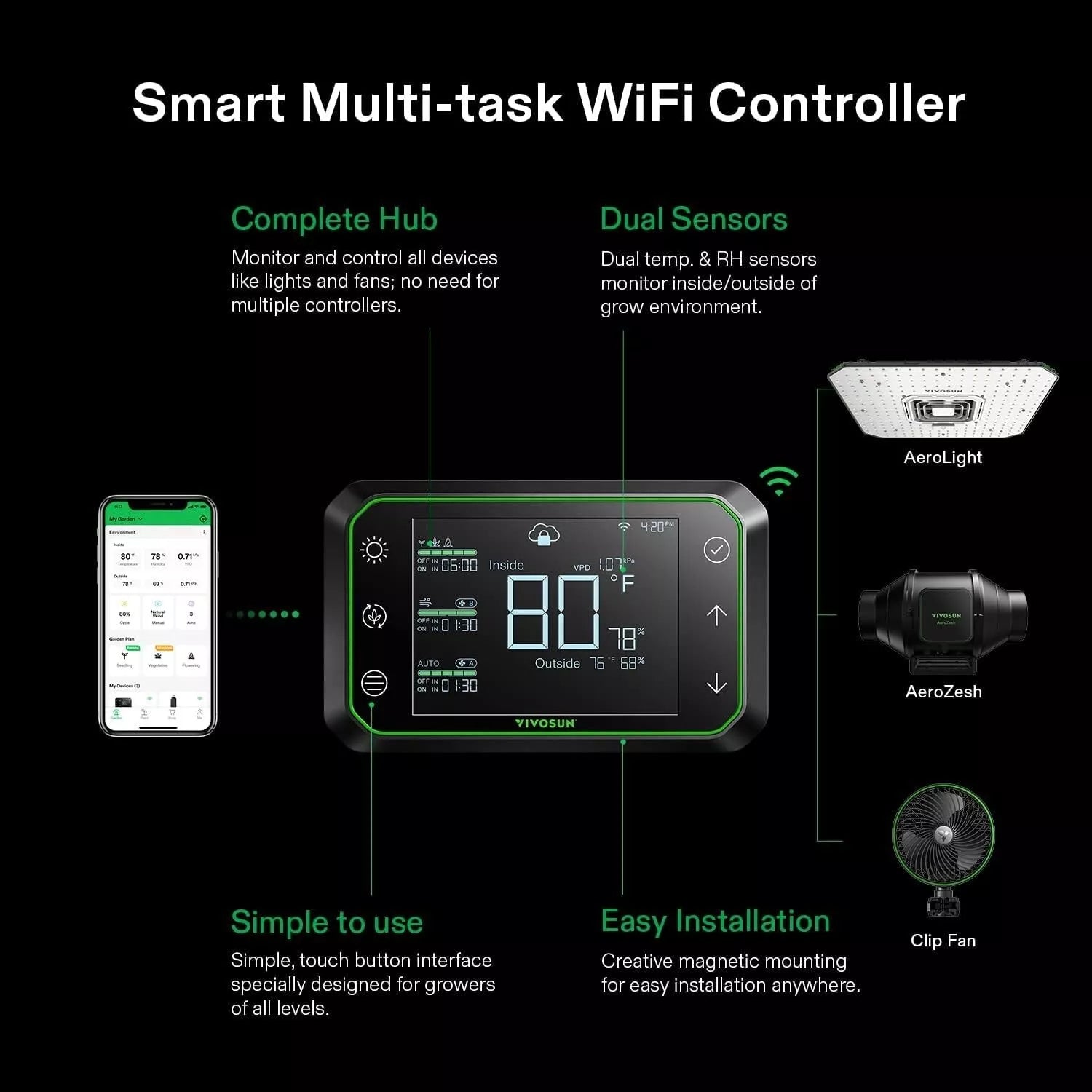 This upgraded AeroLight Wing features wider, foldable LED panels and an integrated canopy fan to optimise airflow and light penetration. With the GrowHub Controller included, you can manage your grow from anywhere via the Vivosun App, automate every growth phase, and monitor key environmental factors in real time.