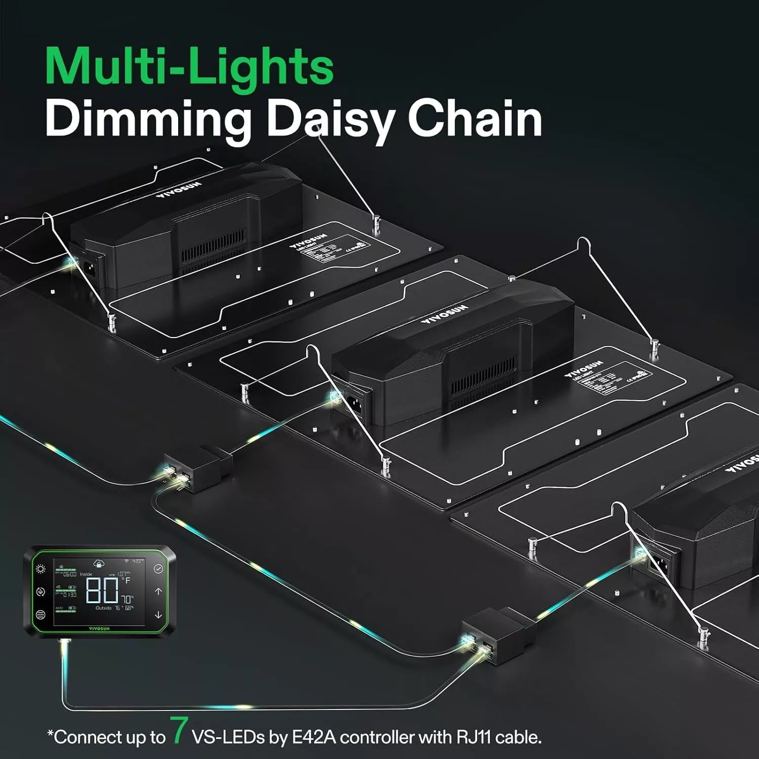 Daisy Chain Ready: Link up to 20 lights using one main controller—perfect for larger grow rooms and commercial setups.