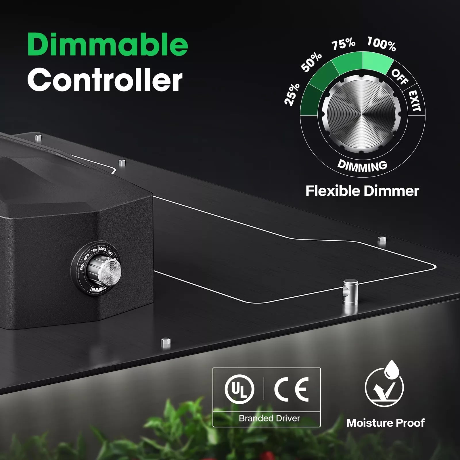 Dimmable Control: Easily adjust intensity with 5-level dimming (0%, 25%, 50%, 75%, 100%) via a built-in knob for tailored plant care.