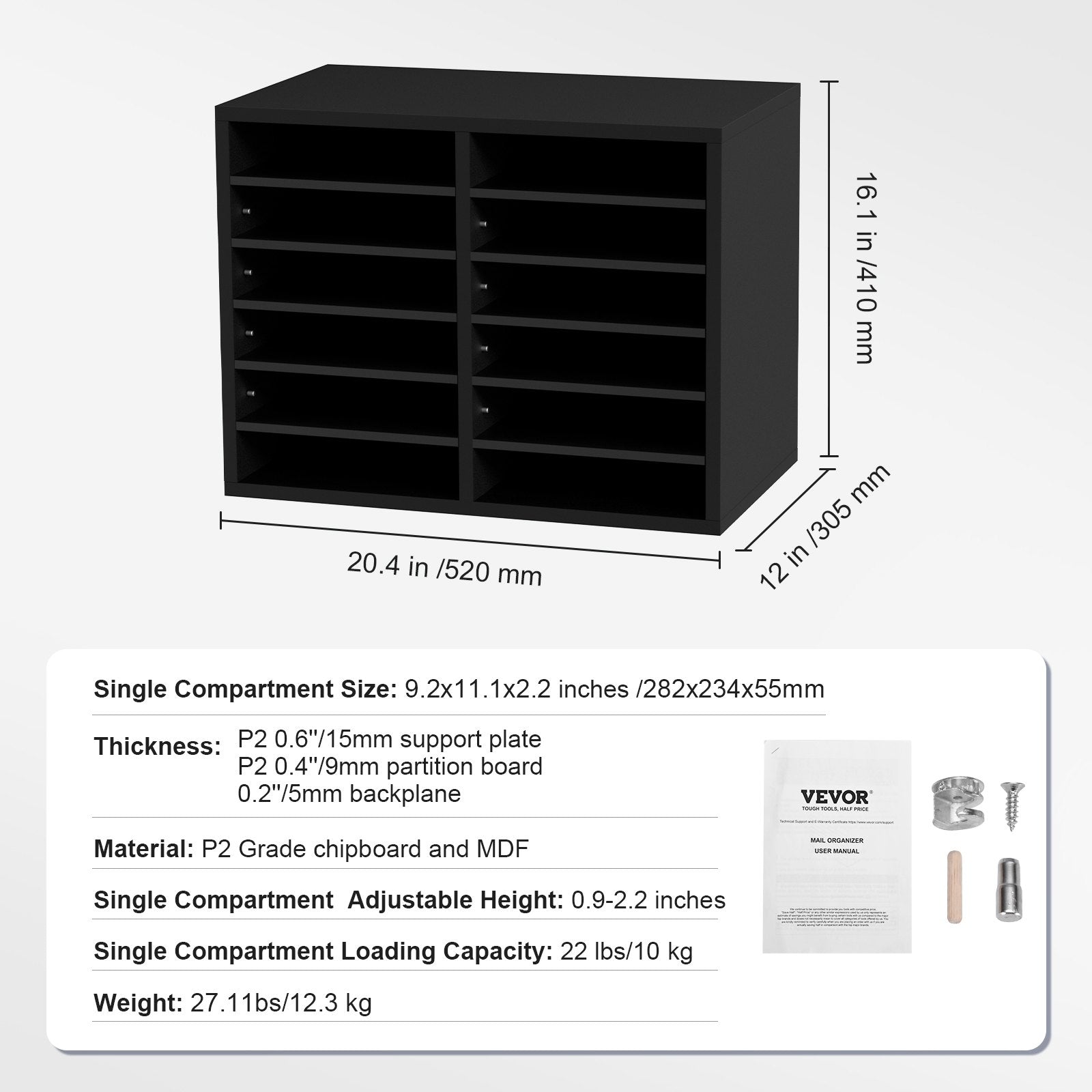 Say goodbye to cluttered desktops with VEVOR 20.4''x12''x16.1'' wood literature organizer. It has 12 compartments in total, arranged in 6 rows and 2 columns. You'll have ample space to store and organize books, documents, magazines, papers, and other materials. Keep your workspace neat and tidy with ease.