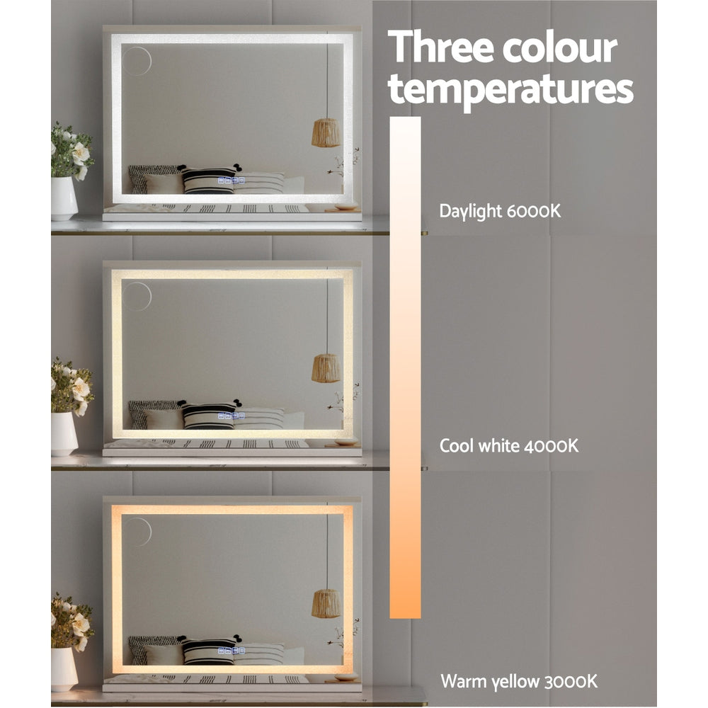 Get the star treatment you deserve with a gorgeous lighted Makeup Mirror from Embellir. Framed by LED light strips, the mirror lights up your visage to accurately complete your makeup routine. The frame is sturdy and lightweight, adding a touch of glamour to the entire mirror. The frame sits on an equally smooth powder-coated MDF base for stability and durability. The base is detachable, so you can choose to wall mount your mirror and save space. The light is easily adjustable using the mirror touch controls. Adjust for brightness and colour temperature including warm light, natural light and cool light. A built-in Bluetooth speaker allows you to listen to your favourite audiobooks, music and podcasts as you go, and the USB charging port can help keep your devices charged at all times. Turn your bedroom into a celebrity dressing room overnight with the Embellir Makeup Mirror.