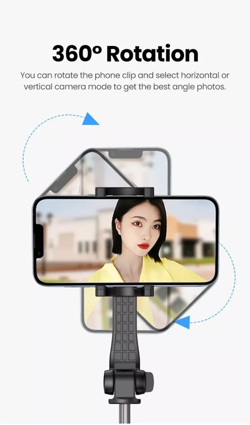 A Selfie Stick style that combines a phone holder to watch movies - live stream - Tripod to take photos remotely with Bluetooth buttons.