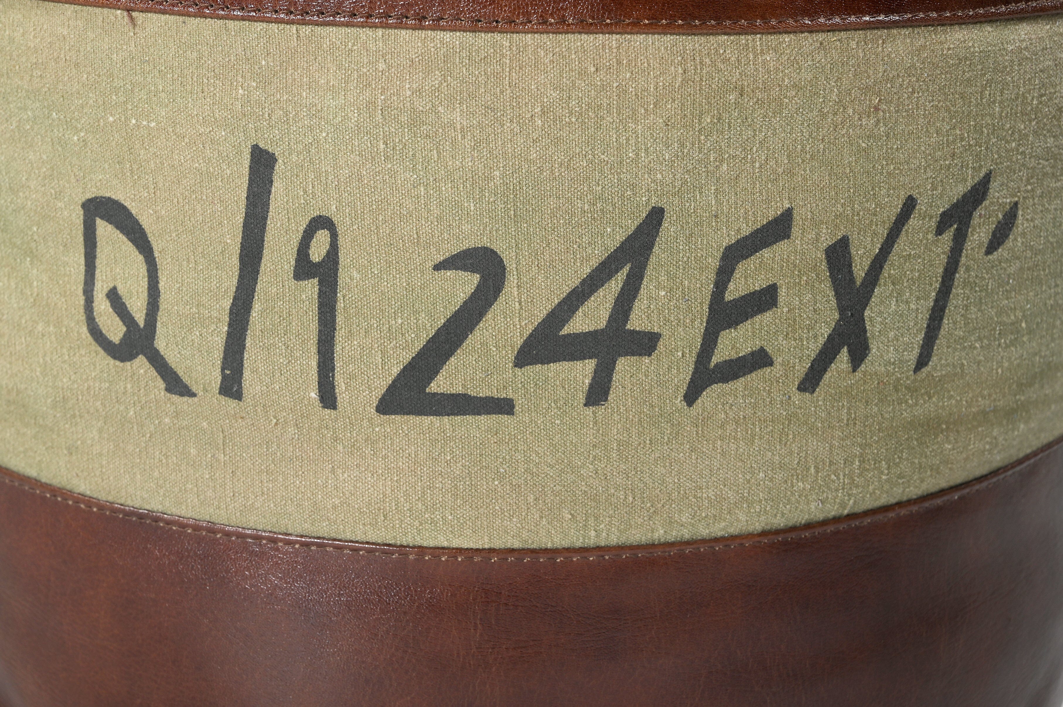 • Handmade Savon France Round Canvas Leather Ottoman