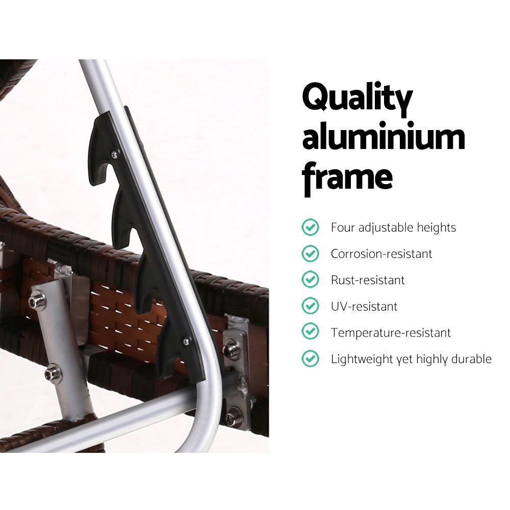 Take relaxation in your outdoor area to a whole new level with our amazing looking Gardeon Bedarra Lounge. Made of UV-resistant PE wicker, the lounge is stylish and chic with its slender profile. Just perfect for use at your balcony, veranda, deck, patio, garden or pool side. The aluminium frame is designed to be strong and durable with great anti-rust properties. Better still, the armrests feature a reversible design that can be adjusted four ways to suit your preferred support while the lounge can also be laid flat for that perfect tan or soothing rest. Not least, the lounge comes with an all-weather pillow for extra comfort with its washable cover easily removed for cleaning when required