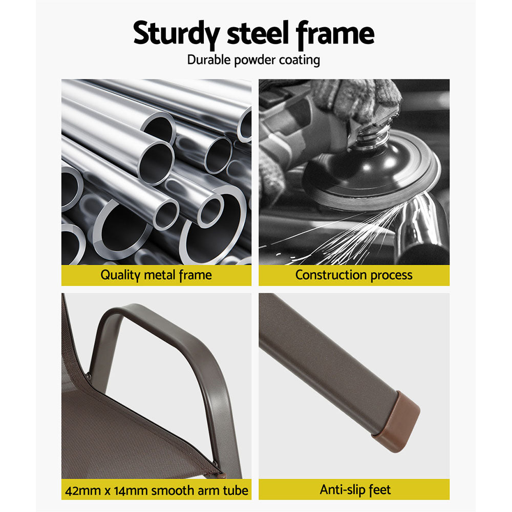 Whether you’re hosting an intimate outdoor dinner party or barbeque night for your friends or family, the Gardeon outdoor stackable chair set is the perfect outdoor setting that will wow your guests. Designed for years of enjoyment, the chair is made from premium textilene fabric and a sturdy metal frame with a durable powder coating. The anti-slip feet and weather-resistant material make them perfect for outdoor use. The chairs are stackable, which makes for convenient and easy storage when not required. A smooth surface allows for easy cleaning and maintenance. You can also pair this classic chair set with our sturdy and beautiful matching table to create a harmonious look. Start enjoying summer today with the stylish 6 x Outdoor Stackable Chair Set from Gardeon.