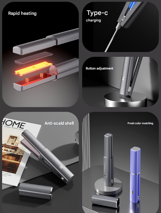 • Cordless Freedom & Compact Design: Say goodbye to tangled cords. This straightener is powered by a large-capacity rechargeable battery and features a sleek, compact body with a protective cap, making it your perfect travel companion.