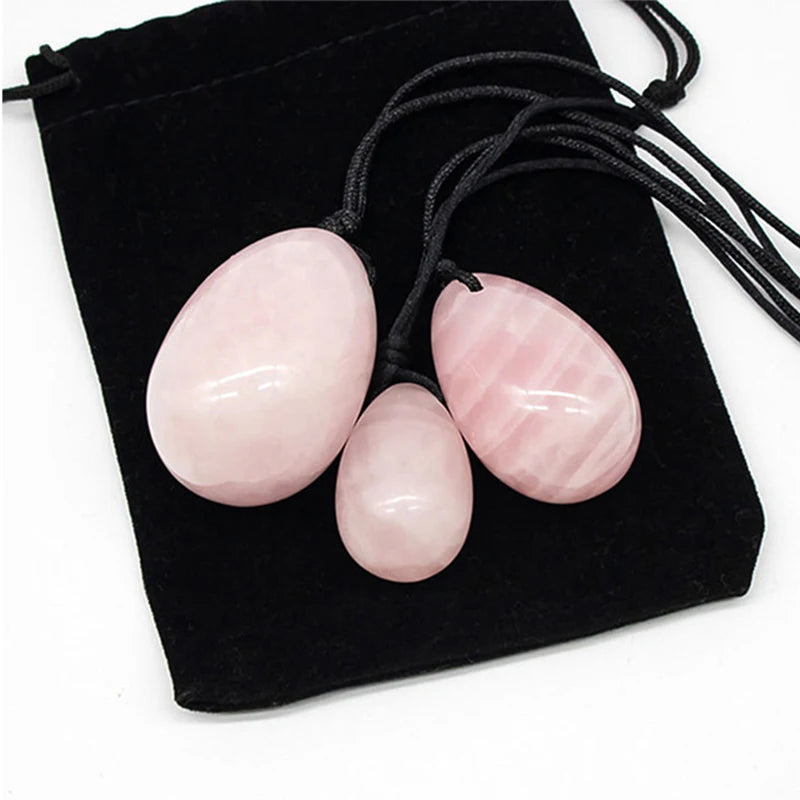 Strengthen and rejuvenate your pelvic floor with our Natural Rose Quartz Yoni Egg Set. This set includes multi-sized eggs (S, M, L) crafted from 100% natural rose quartz, perfect for kegel exercises and muscle tightening.