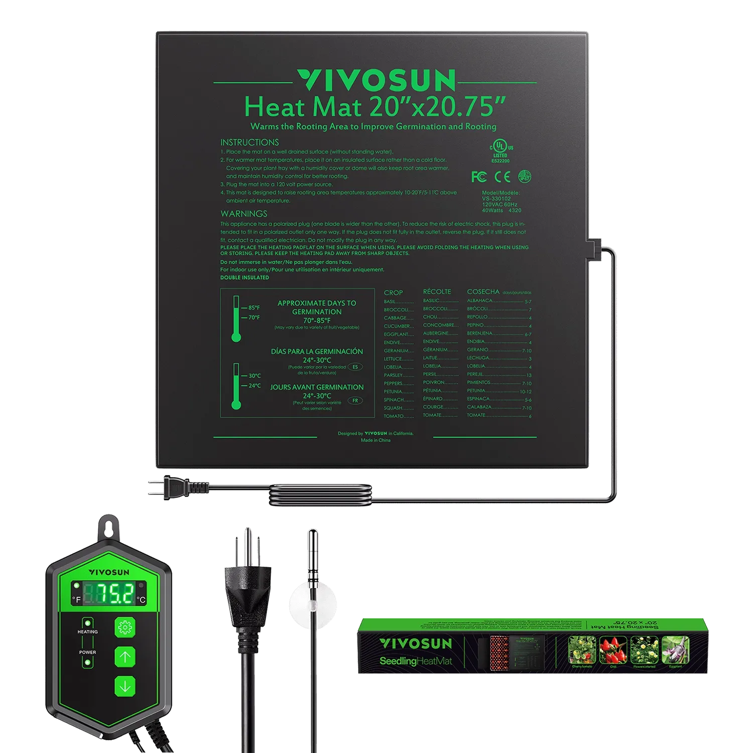 Made with strengthened Alloy Nikrothal heating wire, PET insulation film, and a fortified power cord seal. The mat is water-resistant, flexible, and safe for use in humid growing environments.