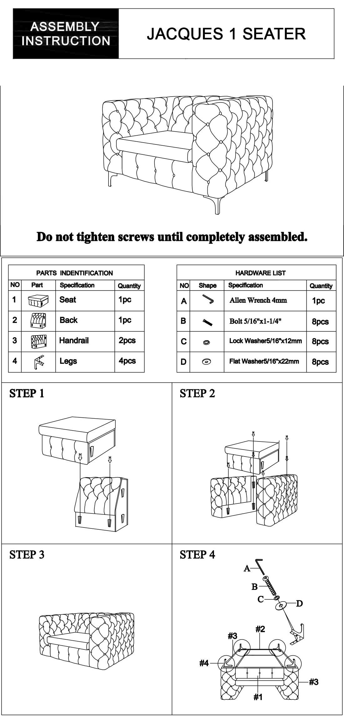 Give your living room a stylish makeover with our newly arrived, stunning Jacques sofa. It comes in combination of 1 seater thus providing the complete seating arrangement for your living room. This new couch is modern, supportive and very much comfortable. It would be a perfect fit especially for a bigger room, so order confidently if you have a spacious space.