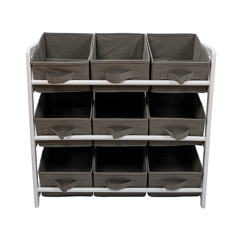 Featuring a sturdy white-painted wooden frame, it includes nine easy-to-remove fabric boxes with handles. This storage unit provides the perfect solution for organizing toys, books, and other items, making it effortless for children to tidy up their space. With its easy assembly and durable, high-quality design, it offers both practicality and style.