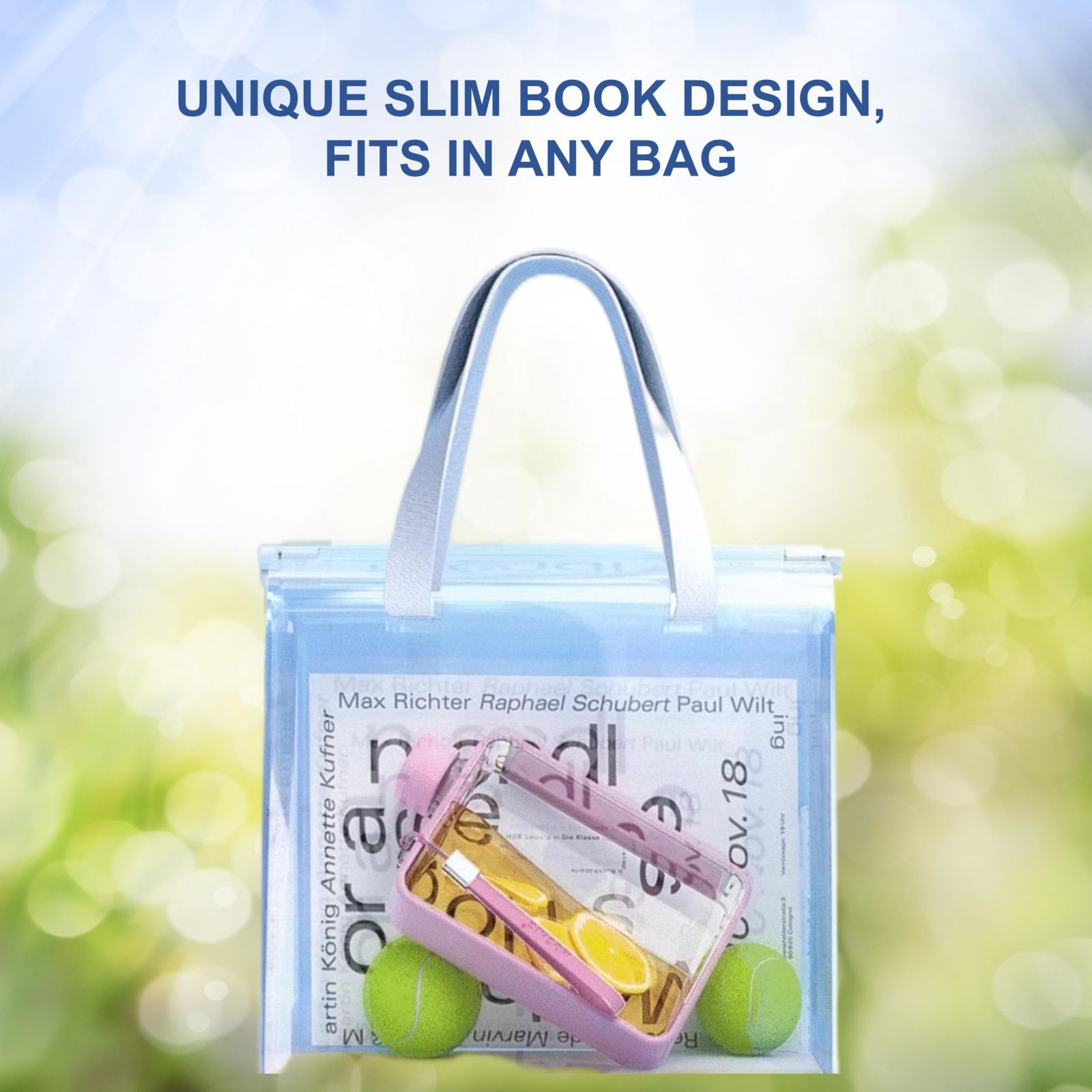 LIGHTWEIGHT & FASHIONABLE DESIGN:Unique slim book design to fit in any bag, such as briefcase, purse, lunchbox or sports bag and even within your pocket. This water bottle takes up minimal space and creates no bulge or sagging. You will Love it!