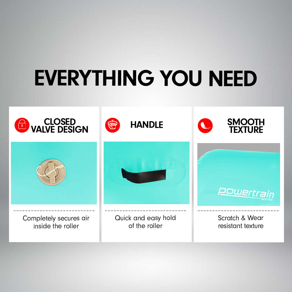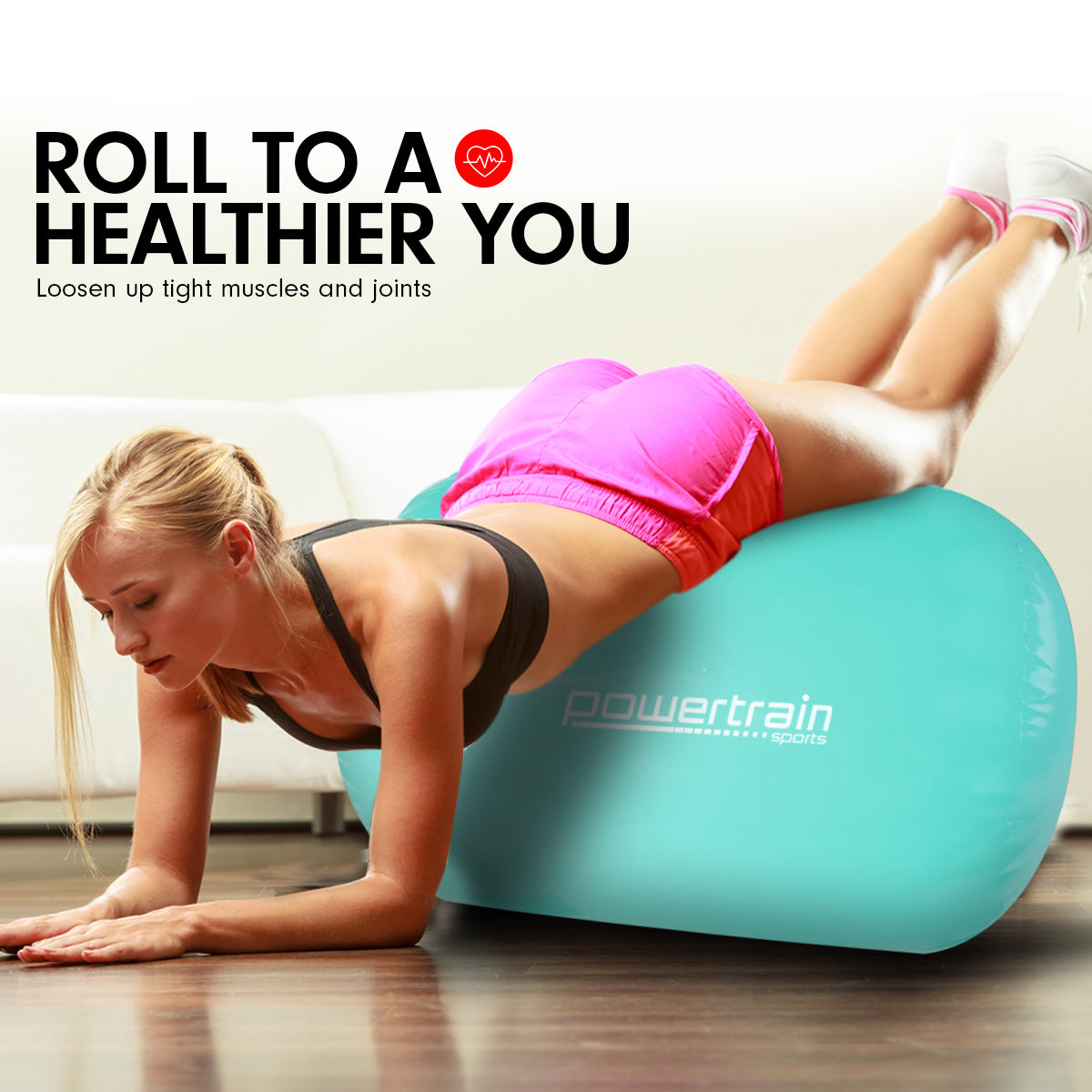 Powertrain Sports Inflatable Gymnastics Air Barrel | Exercise Roller | 120 x 75cm | Green