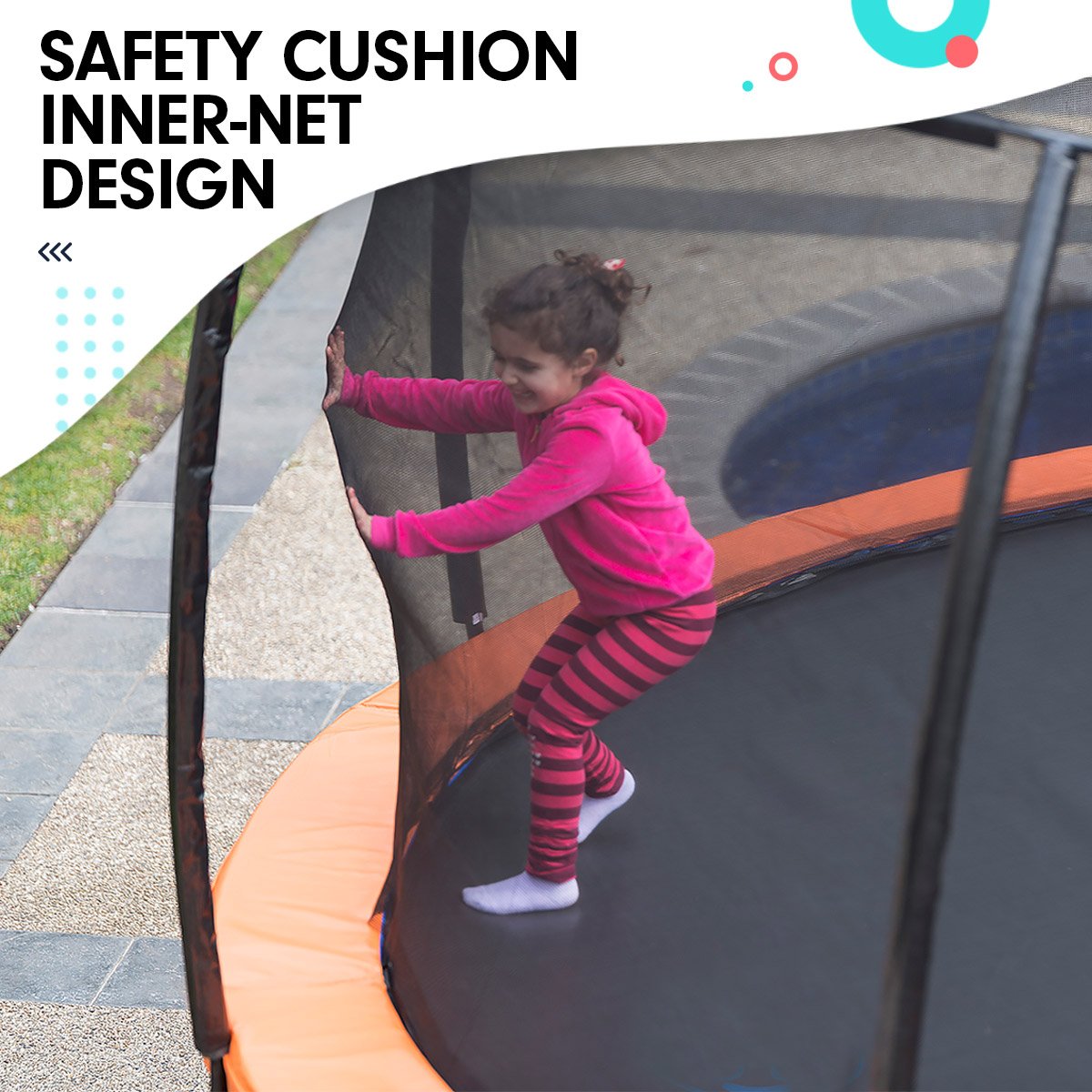 Kahuna Trampoline Replacement NetThis net is made from a tough reinforced weatherproof polyethylene. The entry door uses a high quality zip secured next to one of the poles, and the net covers to the inner edge of the trampoline.
