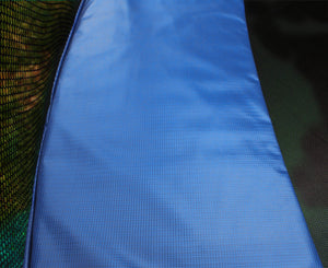The pad is fitted with an 11cm PVC skirt which hangs down over the frame. This assists in locating the padding and also improves the appearance of the trampoline.