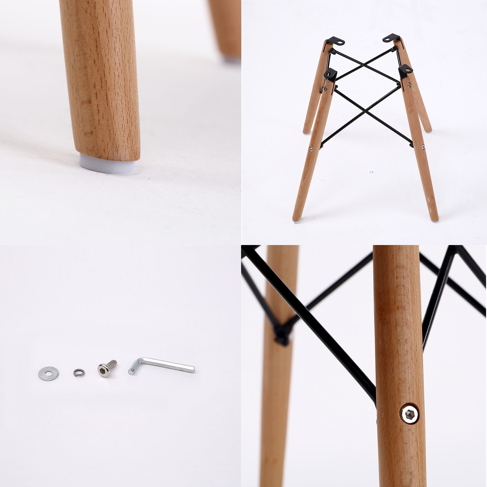 The chair seat is made of high-quality polypropylene plastic, providing maximum durability and comfort. Besides, the beech wooden legs with the extra metal cross frame will add extra strength to the chair, giving it an extra stability.