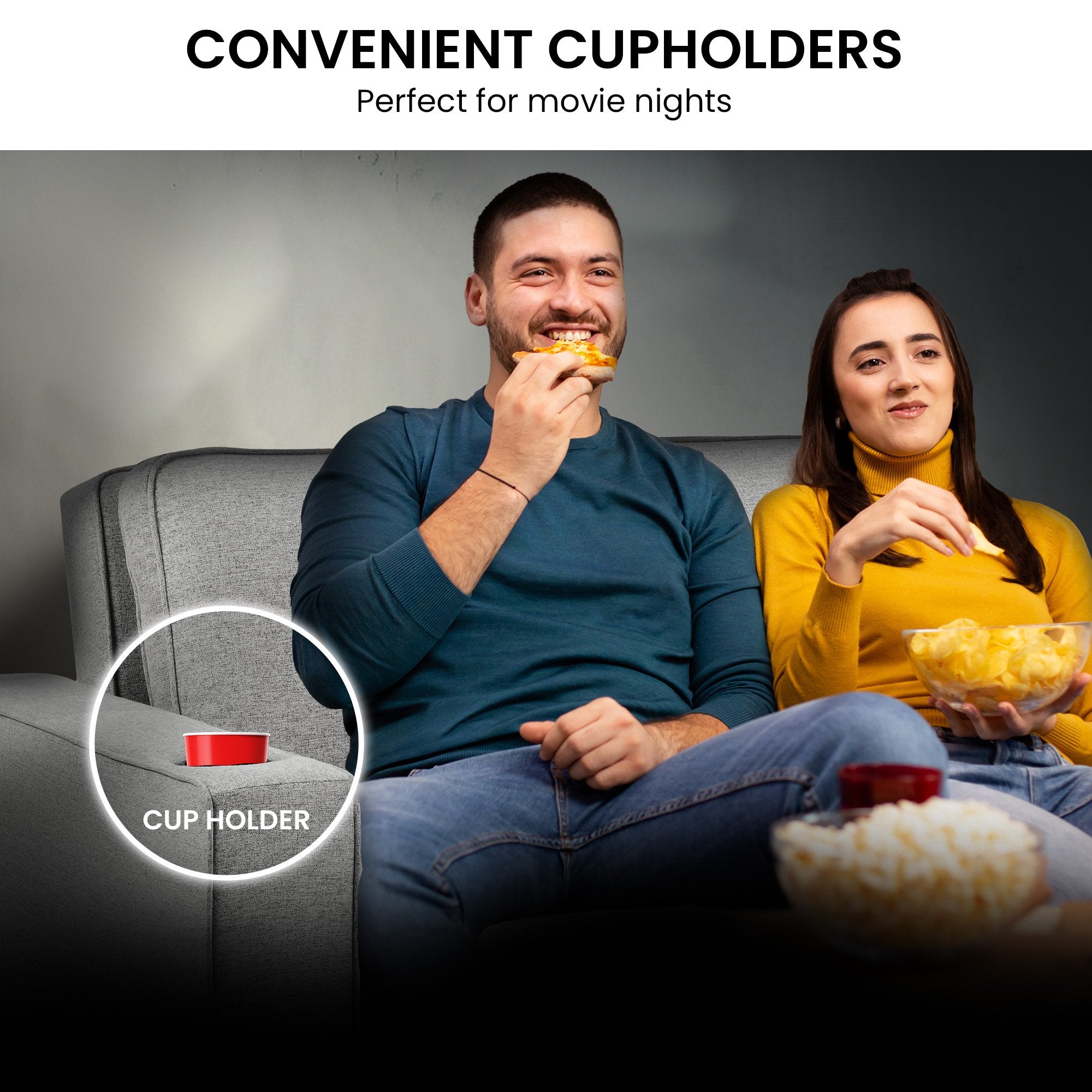 Sarantino Hoffman Linen Sofa Bed Chair | With Cushions & Cup Holders | Light Grey