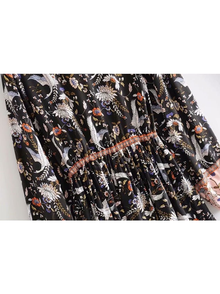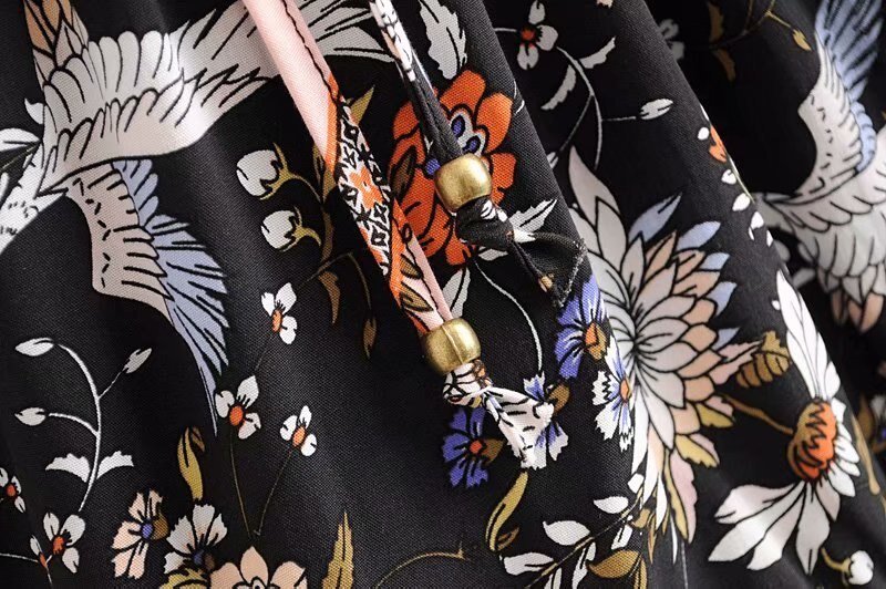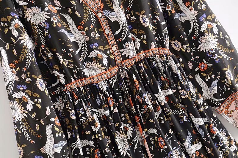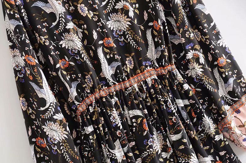 Our Women's Crane Bohemian Beach Dress is a unique and beautiful piece that will surely make a statement. Made from a synthetic fiber blend of cotton and rayon, this dress is soft, comfortable, and lightweight, making it perfect for warm weather. The fabric is knit, giving it a stretchy and comfortable fit. The dress features a striking black base with white crane birds printed all over it, giving it a unique and artistic feel. The v-neck adds a touch of femininity, while the above-knee length makes it a flirty and youthful choice. Whether you're strolling along the beach or attending a summer party, this dress is sure to turn heads and make a statement. Available in sizes S-XL, this dress is the perfect choice for any woman looking to stand out in a crowd.