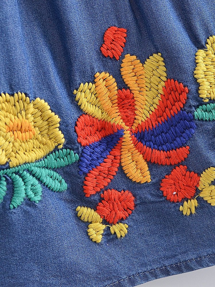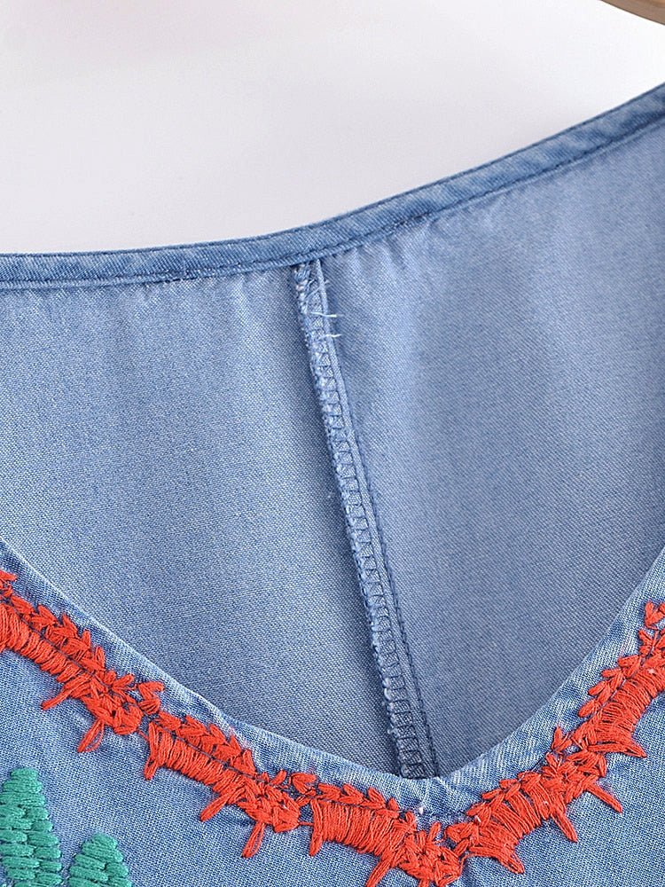 Our Women's Old School Hippie Beach Mini Dress is the perfect choice for any beach or summer occasion. Made from a blend of cotton and denim, this dress is soft, comfortable, and durable, making it perfect for everyday wear. The denim fabric gives it a classic, old school feel, while the embroidery adds a touch of bohemian charm. The dress falls above the knee, making it a flirty and fun choice for any event. Available in sizes M-L, this dress is sure to flatter any figure. So, it is an ideal dress for any woman who wants to channel her inner hippie and have fun in the sun.
