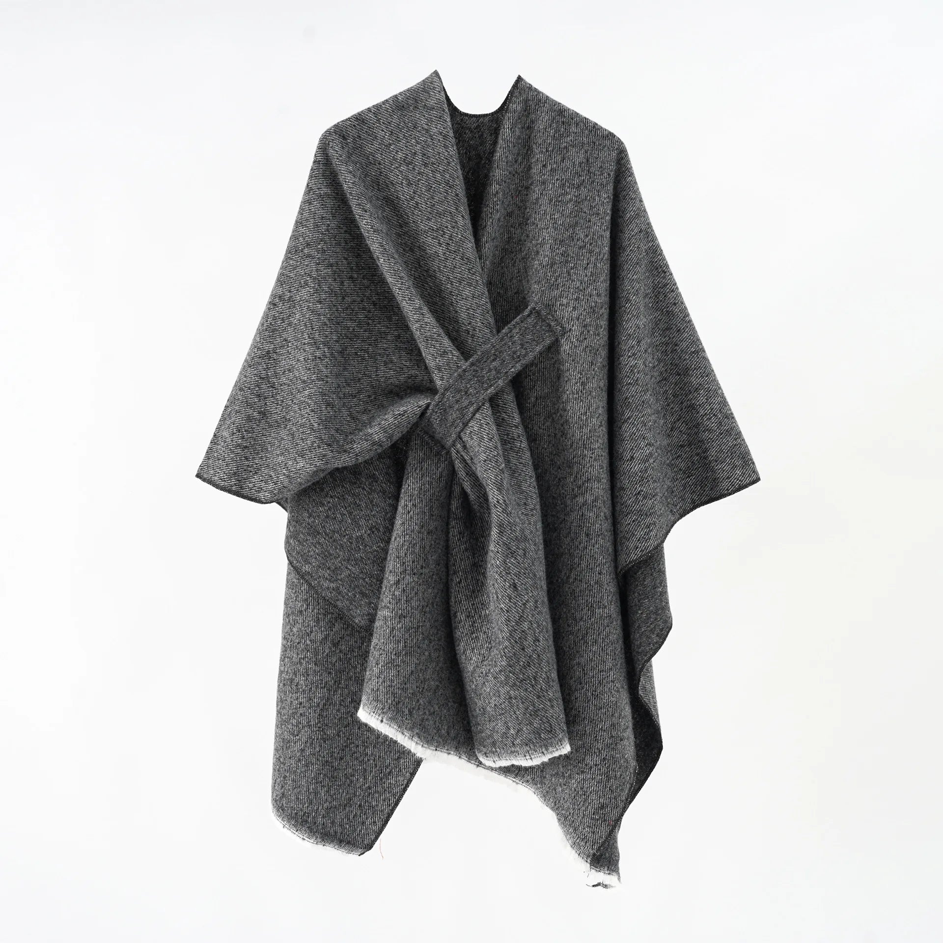 Wrap yourself in warmth and wanderlust with this bohemian faux cashmere shawl – the perfect layering piece for free-spirited souls. Featuring a striped split design, this versatile cloak doubles as a cozy wrap, oversized scarf, or outer layer for cooler days. With its soft faux cashmere feel, it brings comfort and elegance together in a classic monochrome palette – ideal for both hippie-inspired outfits and everyday wear.