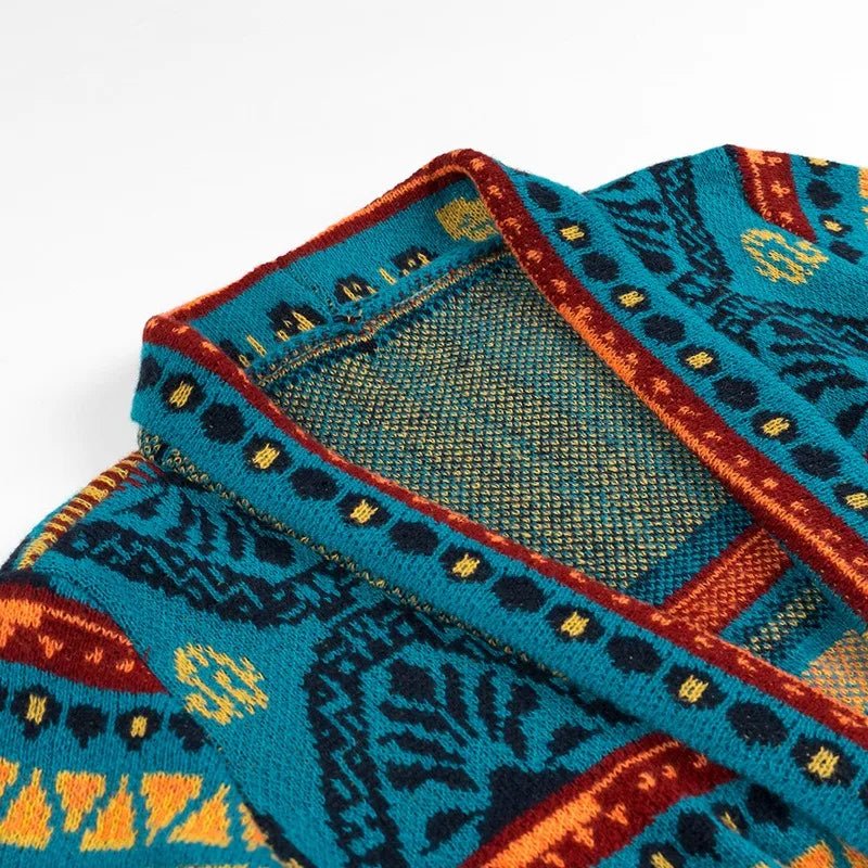 Intricate knit patterns with striped and ethnic-inspired detailing