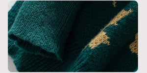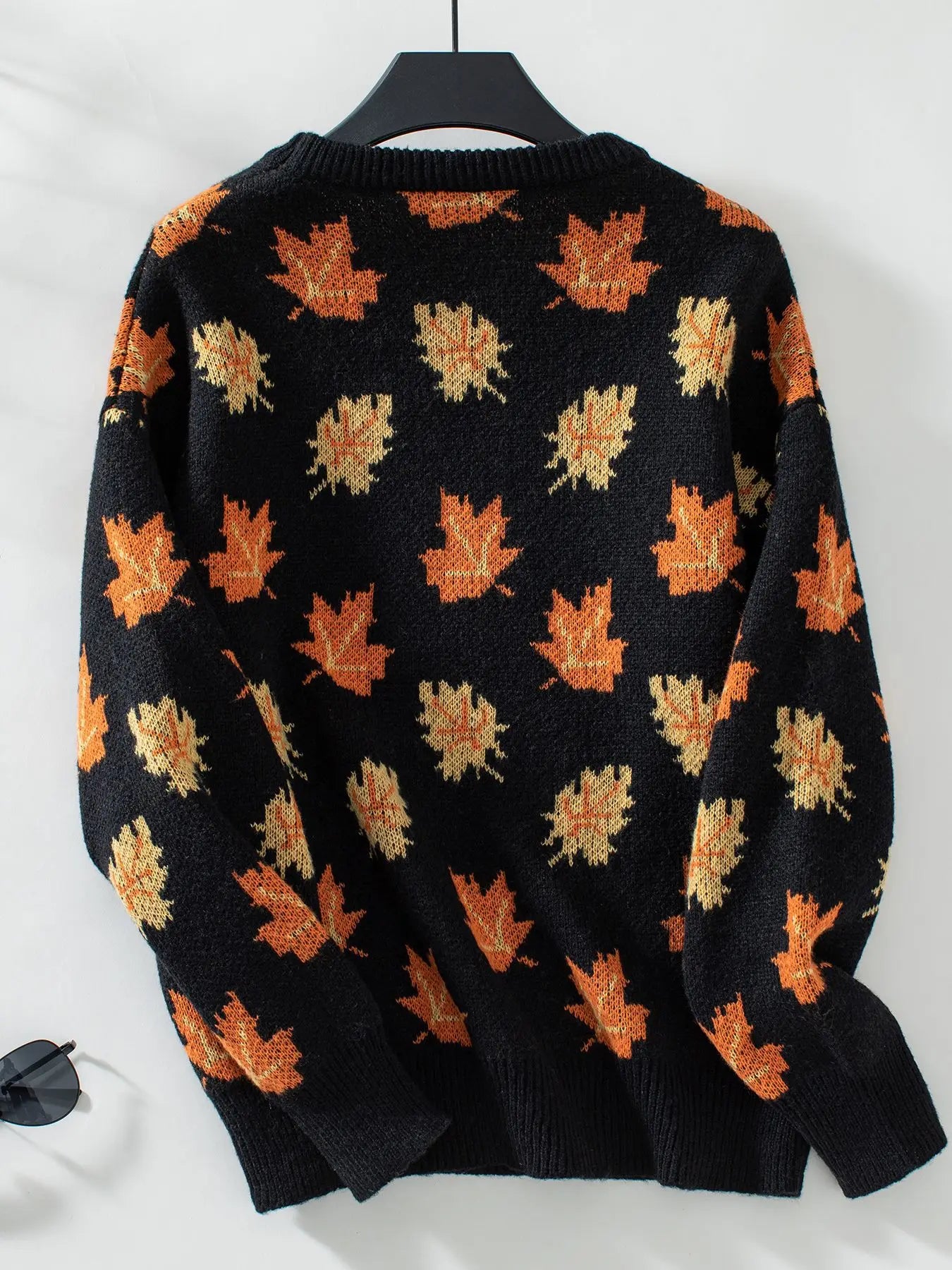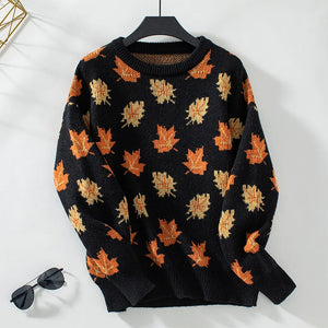 Stay warm and stylish this autumn and winter with our Women's Knitted Pullover Sweater, featuring a charming maple leaf print. Available in classic black and vibrant green, this thick and cozy sweater is designed to keep you comfortable in cooler weather.