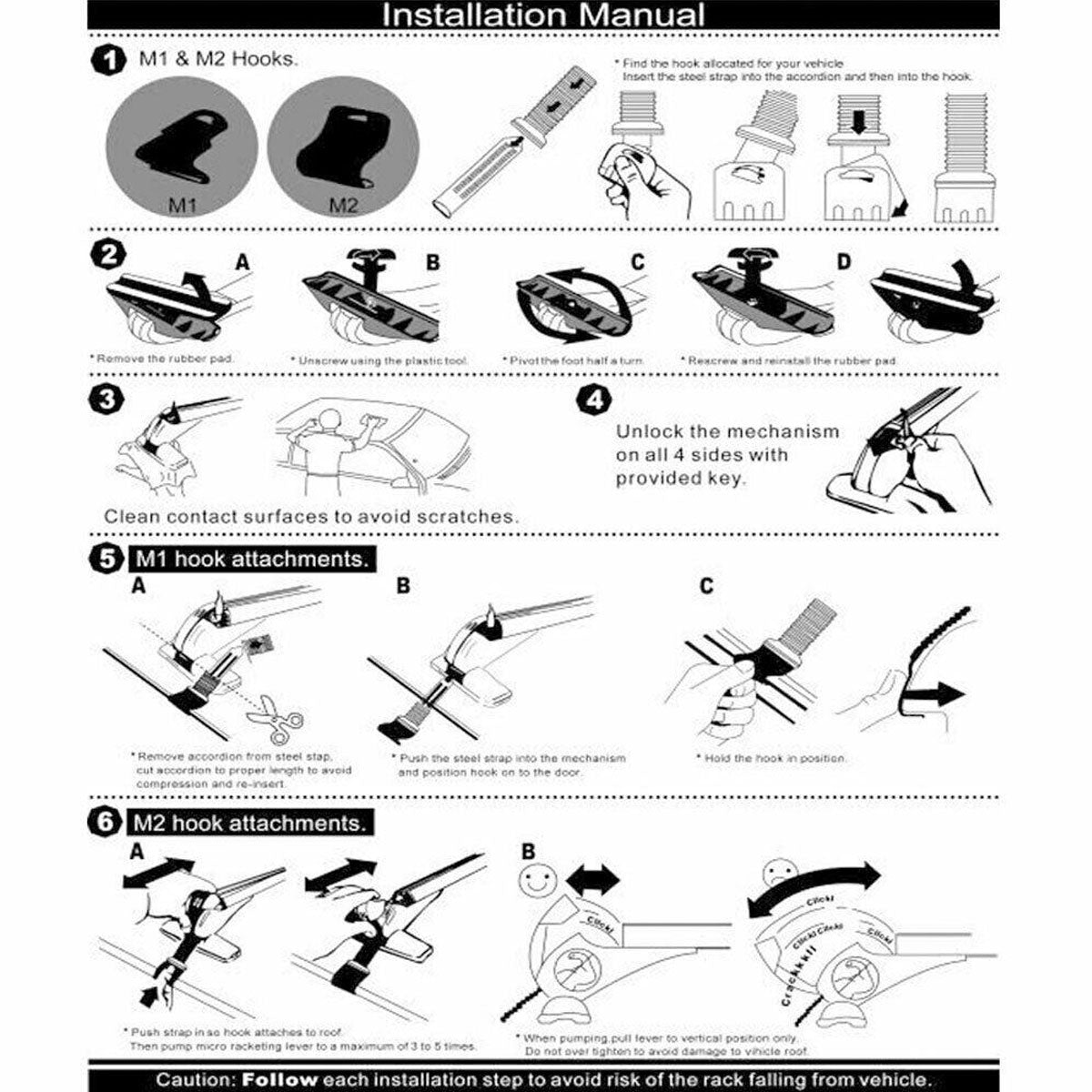• Suitable for 4-door cars and SUVs with bare roofs (no roof rails)