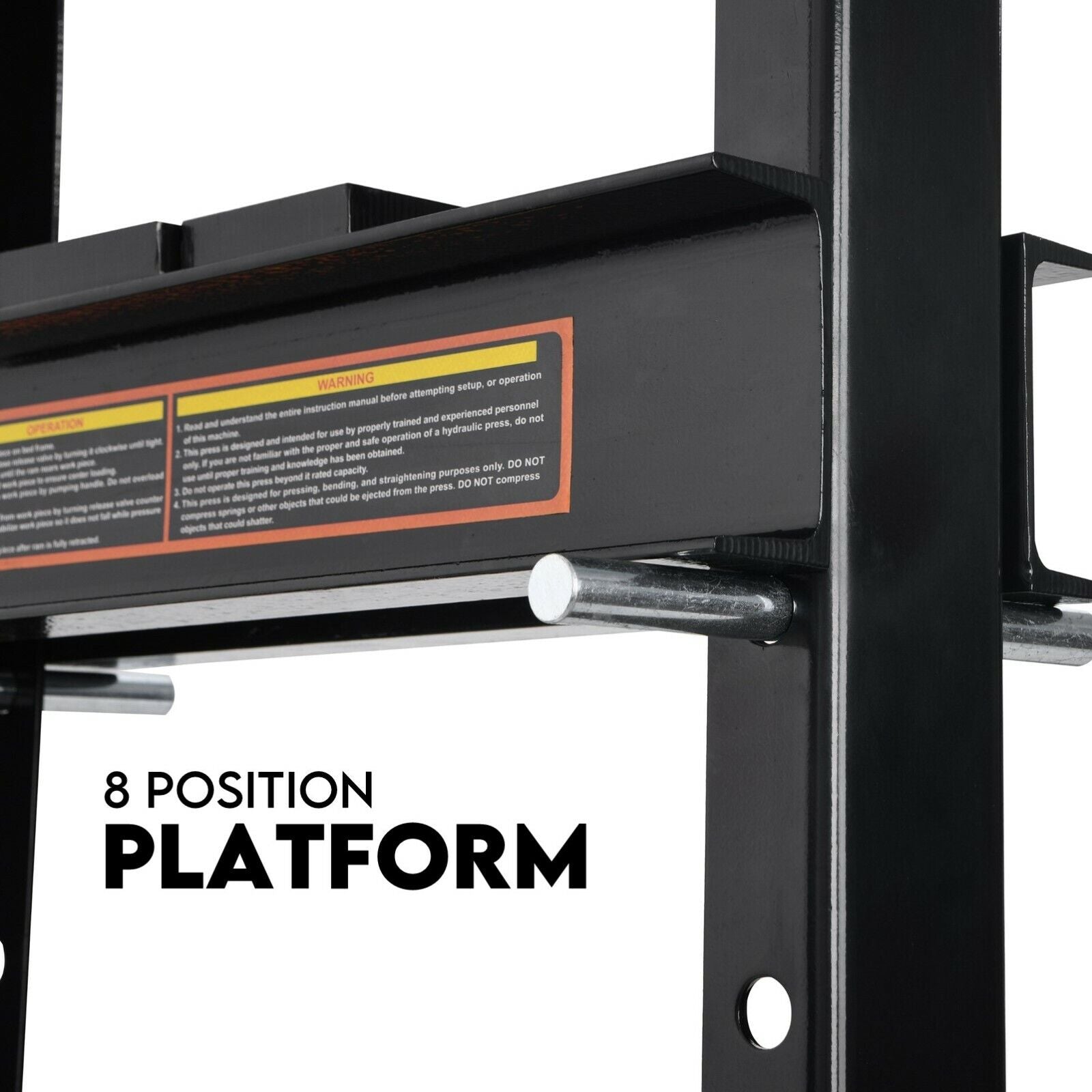 The work press table may be placed at 8 different height adjustments, to cater to various pressing tasks.