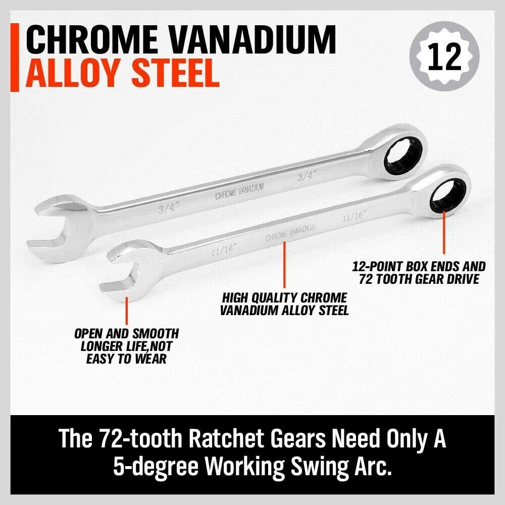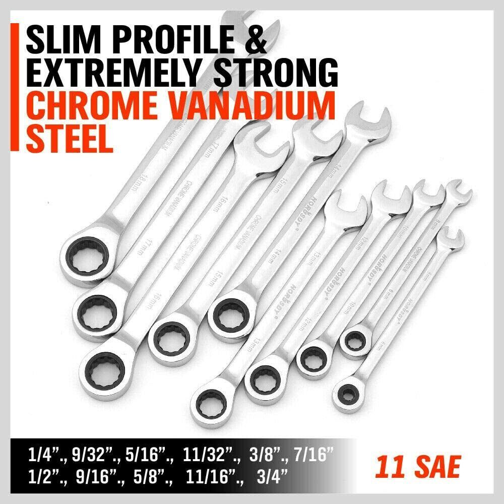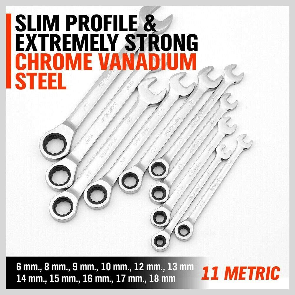Contains a pack of 22 Piece ratcheting wrench set, including 10pcs imperial wrenches and 10pcs metric wrenches