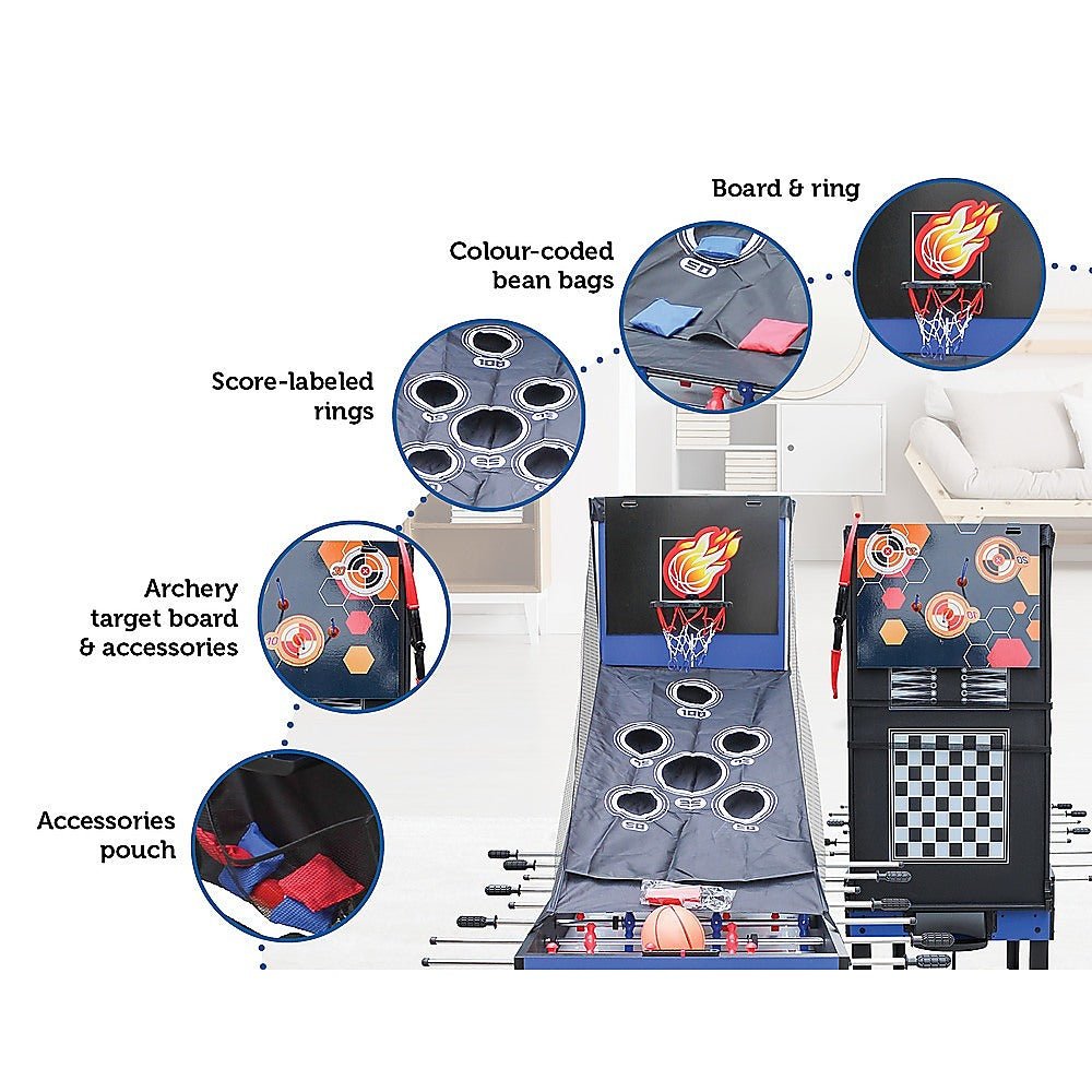 It's easy to set up and easy to maintain. Crafted from sturdy MDF, with steel rubber-handled foosball rods, it's as durable as it is versatile. Teach your kids some fun lessons about friction with your air hockey table, and then hone your jump shot with the basketball game afterwards. You and your family will never get bored again! Order your game set today!
