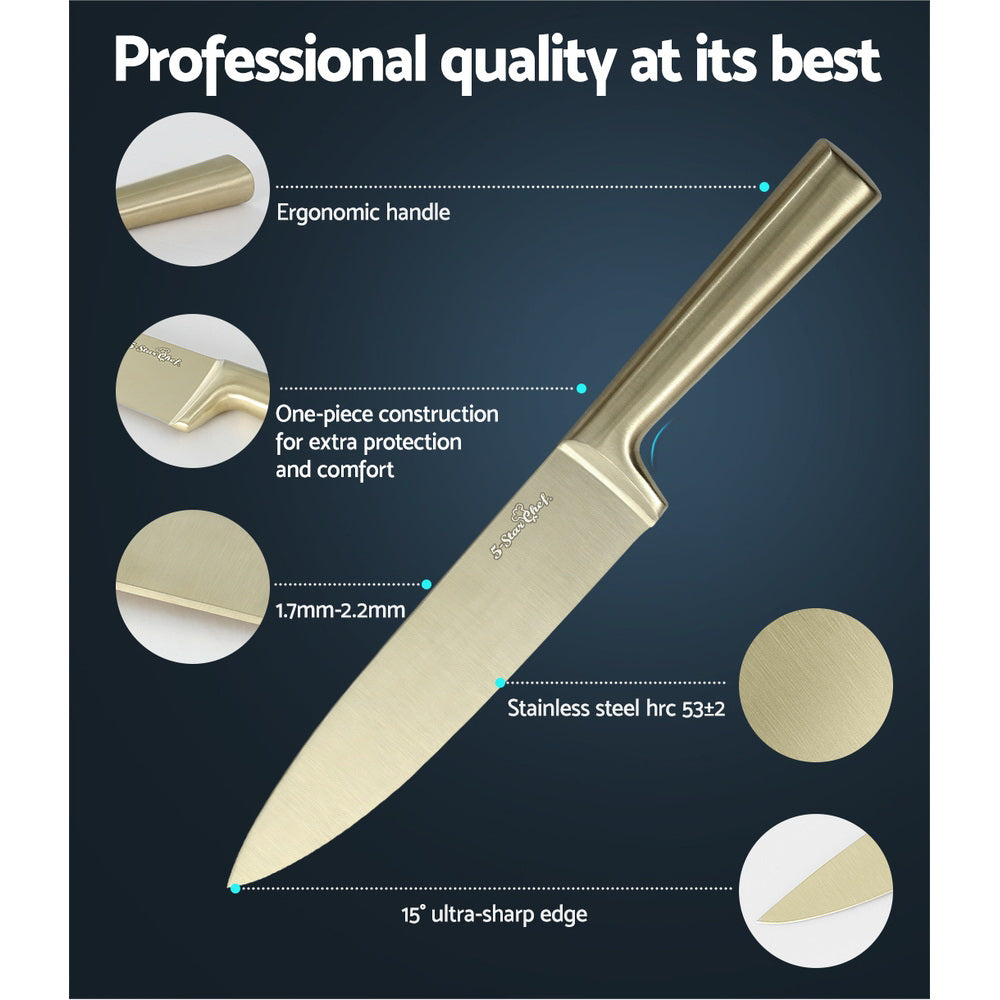 5-Star Chef 6-Piece Stainless Steel Kitchen Knife Set | Nonstick Block | Sharp Chef Knives