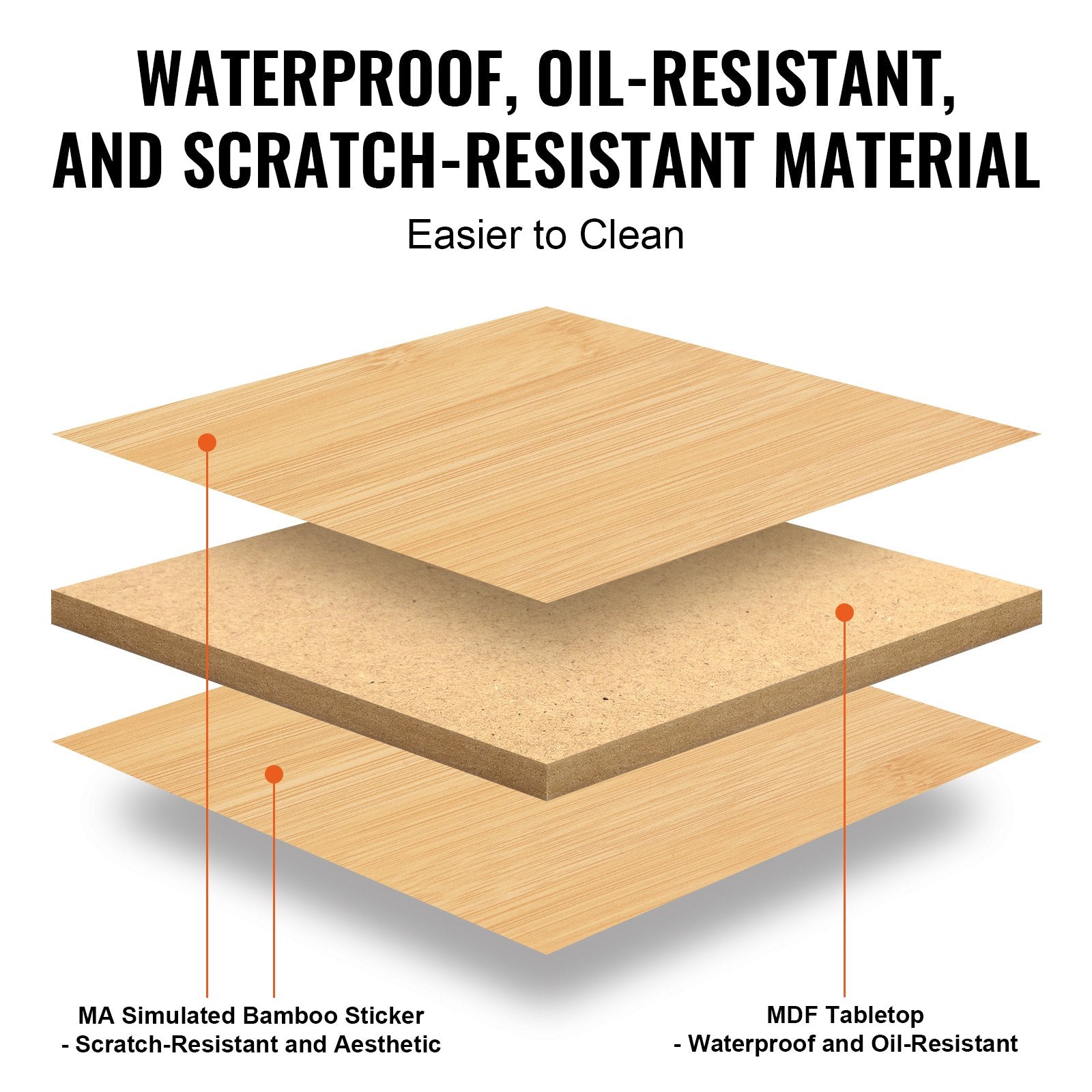 This bed tray table featuring an MDF (Medium Density Fiberboard) tabletop that is synthesized under high temperature and pressure for water and mold resistance. It is then covered with MA bamboo-patterned stickers, resulting in an overall smoother surface that is easy to clean and resistant to deformation.