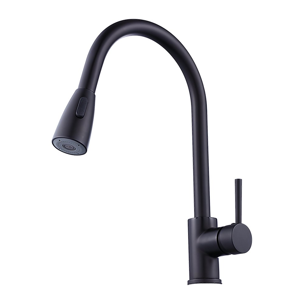 As you'd expect from a leader in quality plumbing products, Della Francesca has manufactured this kitchen mixer with heavy-duty solid brass along with a quality matte black finish. With its long, sweeping neck and bold lines, this mixer will be a great addition to most any kitchen. But this mixer is not just about great looks. Courtesy of a flexible neck, the faucet head can be pulled out and held in the hand for more convenience and flexibility while washing dishes and doing other chores. Reverting back to a traditional mixer is just as easy.