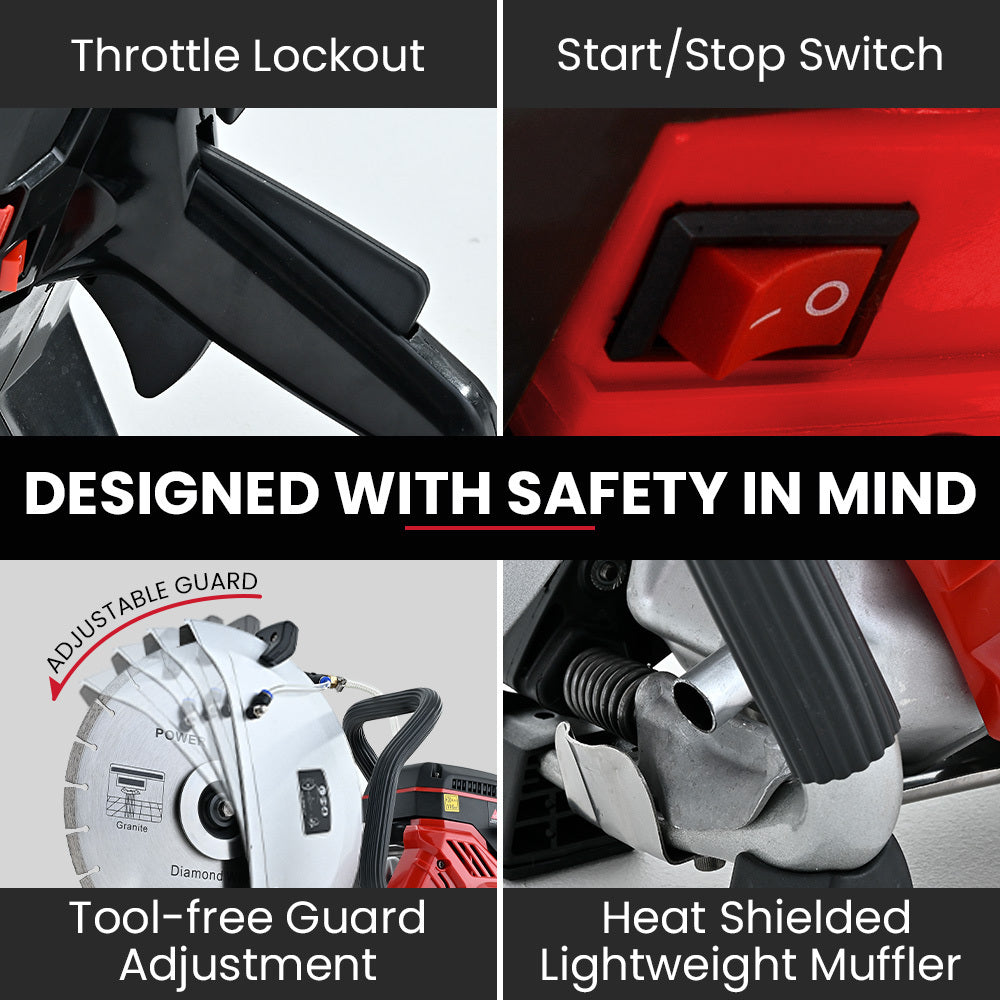 Maintenance is effortless, thanks to the easy-to-adjust belt tensioning system, while the dual arbor compatibility (20mm and 1 inch) ensures flexibility for a variety of blades. The 900ml fuel tank and efficient 40:1 fuel-oil mix provide long-lasting, reliable performance. Whether on a construction site or handling landscaping tasks, the CSP-800 Pro delivers results you can trust.