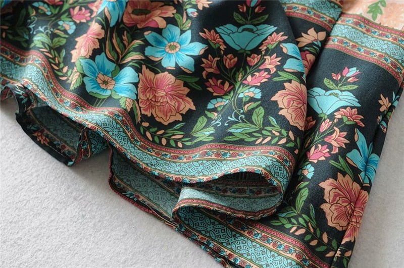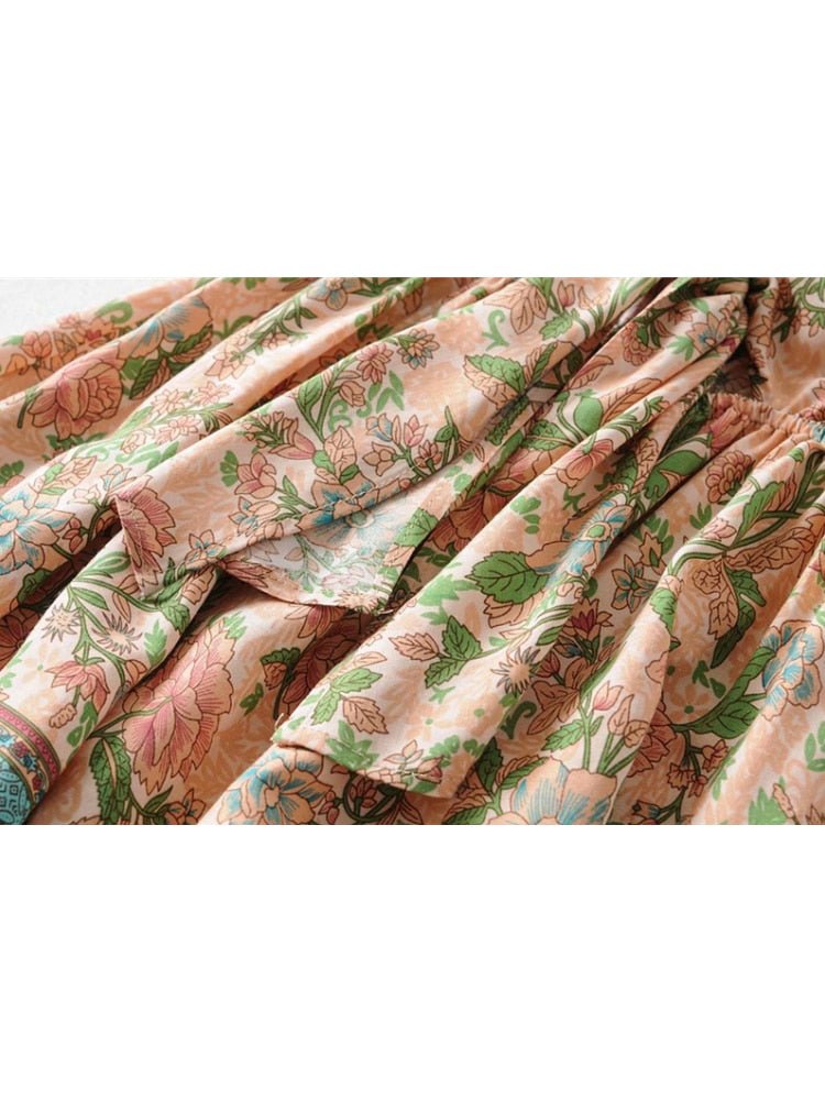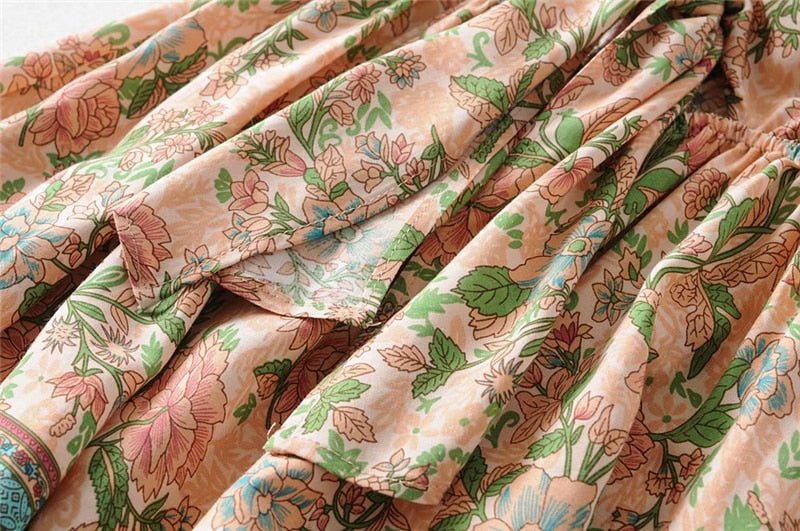 Our Beautiful Summer Bohemian Mini Dress is a stunning and unique piece that is sure to make a statement. Made from a synthetic fiber blend of cotton and rayon, this dress is soft, comfortable, and lightweight, making it perfect for warm weather. The fabric is knit, giving it a stretchy and comfortable fit. The dress features a beige base with red and blue roses printed towards the bottom, giving it a bold and beautiful look. The above-knee length and bohemian-inspired design make it a playful and youthful choice. Whether you're strolling along the beach or attending a summer party, this dress is sure to turn heads and add some floral flair to your wardrobe. Available in sizes S-L, this dress is the perfect choice for any woman looking to add some unique style to her wardrobe.