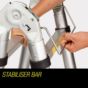 Featuring durable aluminium design, industrial-grade height-locking latches, solid rubber-tipped feet and a stabiliser bar, theBullet telescopic ladder comes with full SGS Safety Certification. Who said that you have to take risks to look cool?