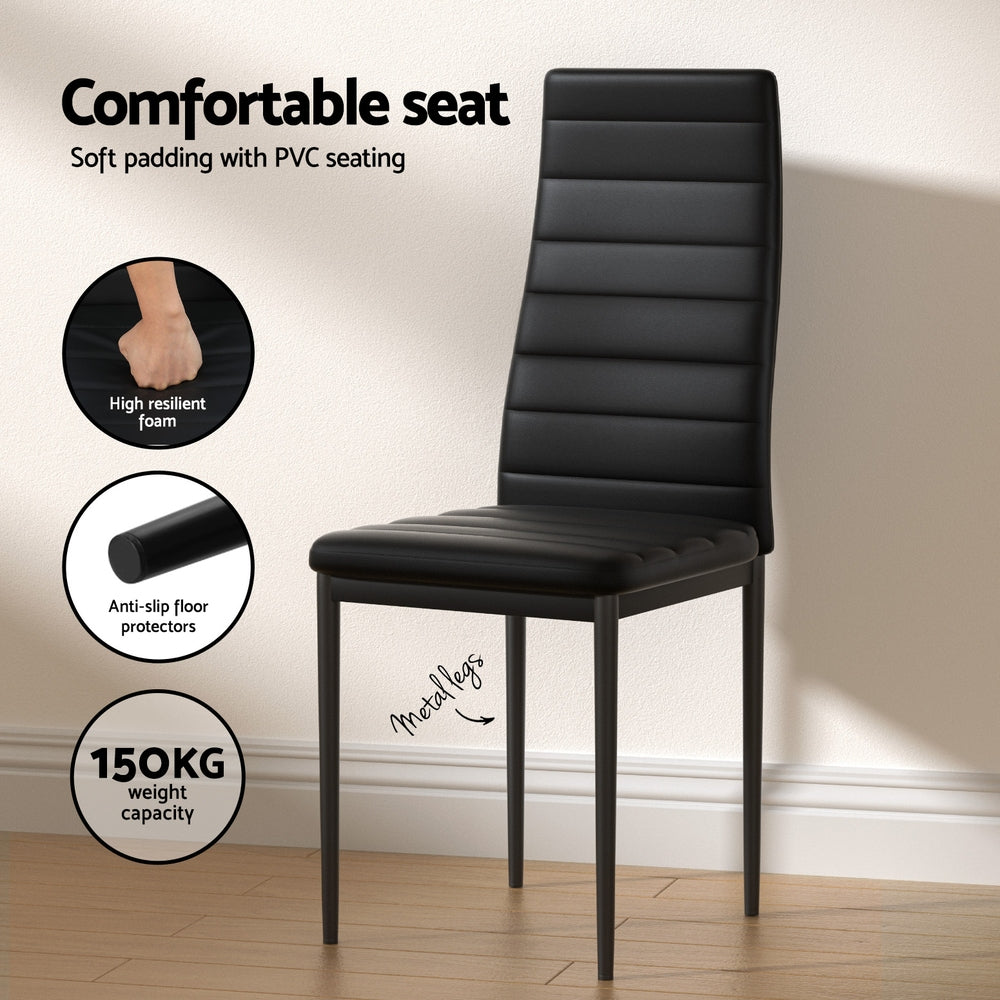 The set includes four chairs with matt-finish PVC seats, offering comfort and easy maintenance. Both the table and chairs are water and wear-resistant, making them ideal for daily use. Whether for family meals or casual gatherings, this dining set offers contemporary elegance and dependable functionality.