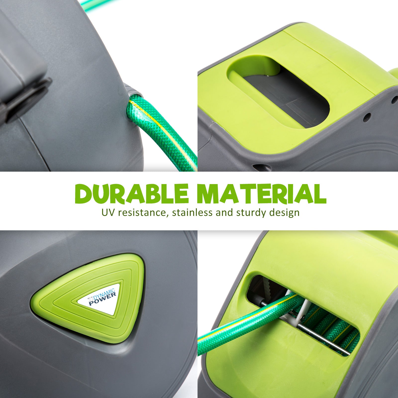 Dynamic Power Garden Water Hose 10M Retractable Rewind Reel Wall Mounted